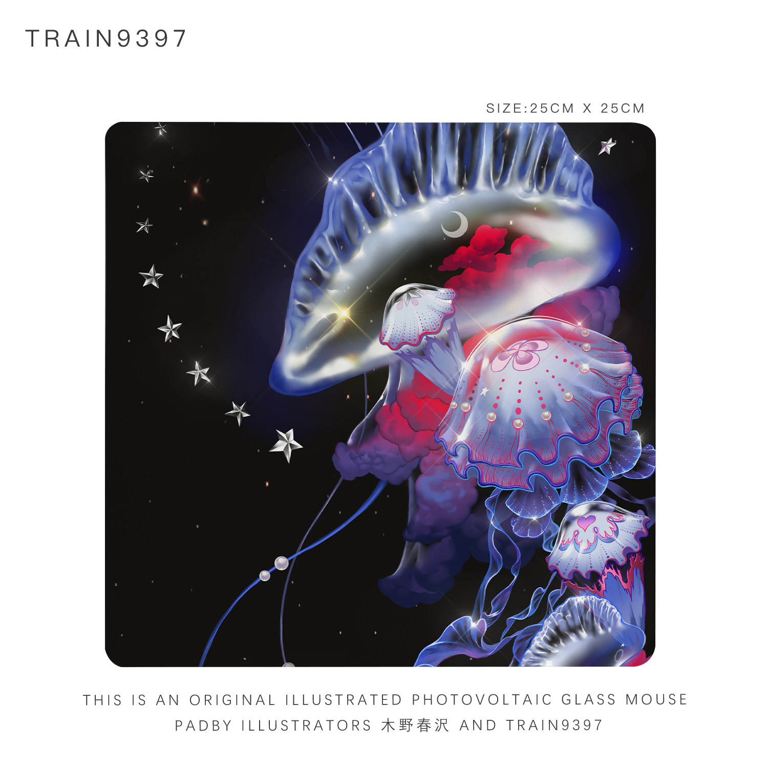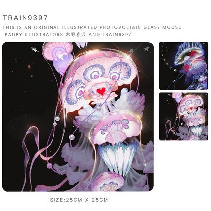 9397水母系列自创插画光伏玻璃鼠标垫25x25cm游戏电竞用