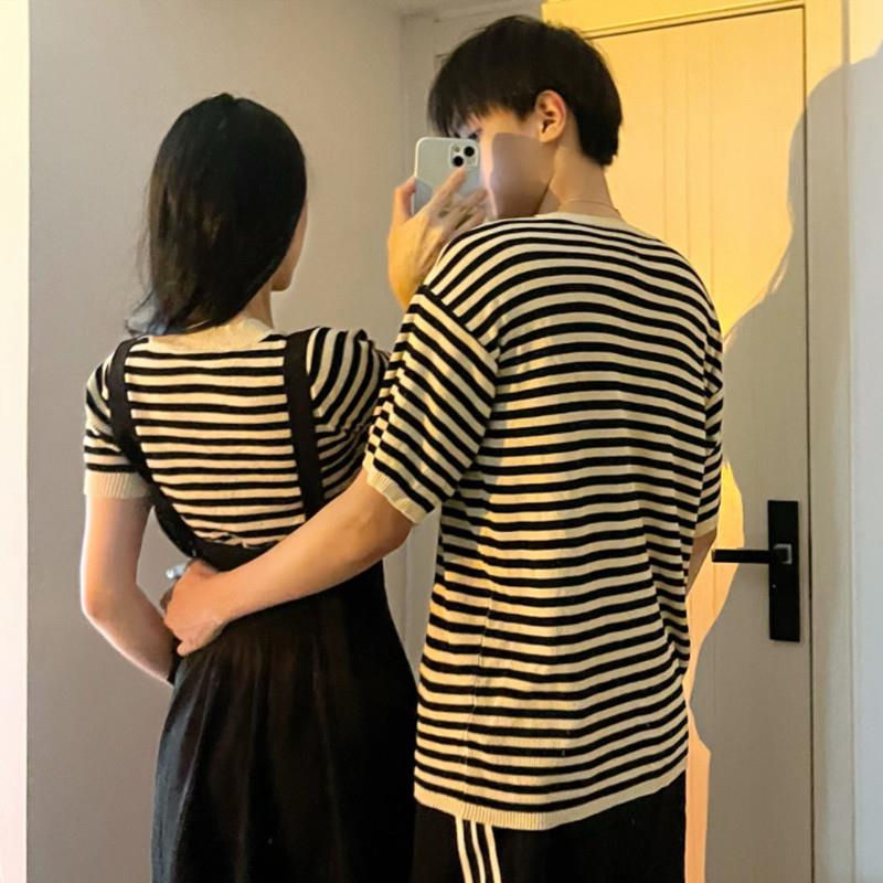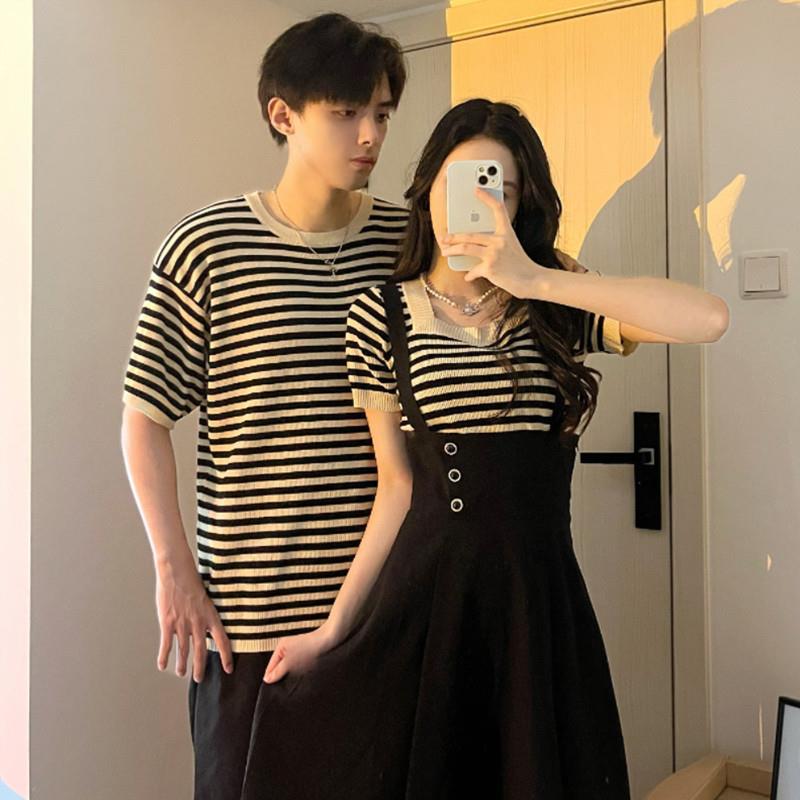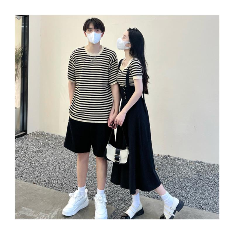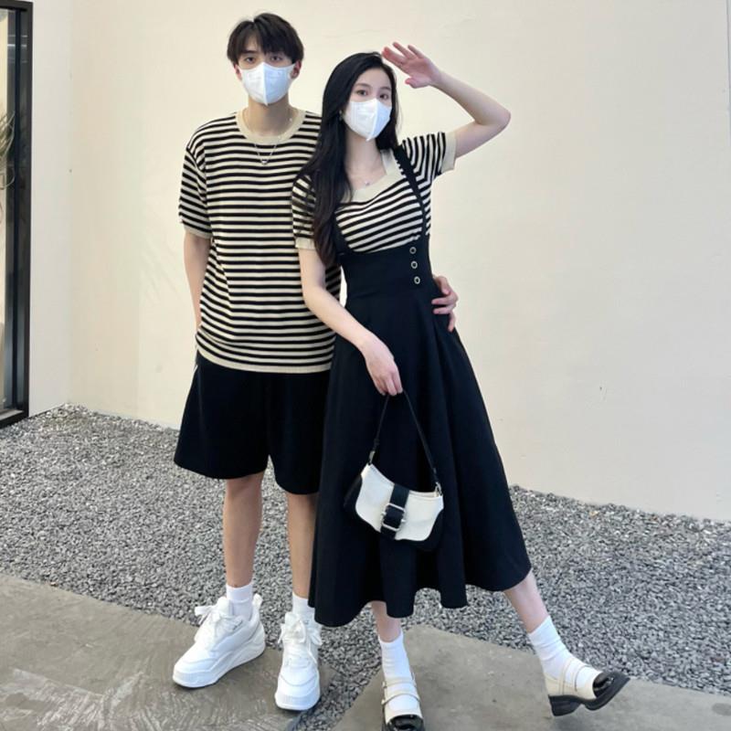 情侣装夏季一裙一衣法式女背带裙黑白短袖t恤小众设计高级感套装
