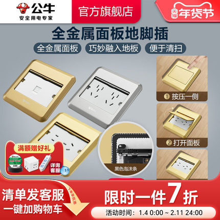 公牛地插插座单开门地插座隐形地板家用地脚插座地面插座赠送底盒