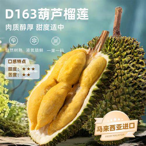市舶士马来西亚小品种红肉竹脚红虾江海葫芦榴莲液氮冷冻整果树熟