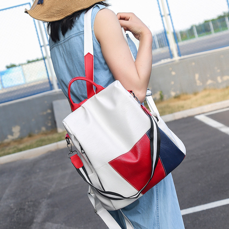 双肩包女2021新款潮韩版百搭大容量软皮旅行防盗包女背包两用书包