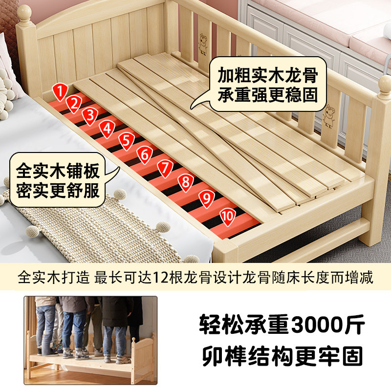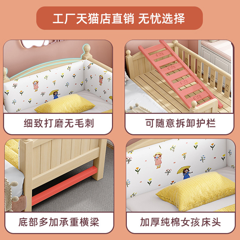 实木儿童拼接床带护栏宝宝婴儿小床定制女孩公主床加宽大床边神器