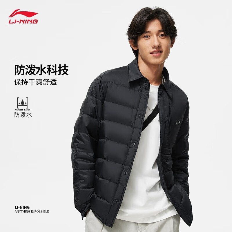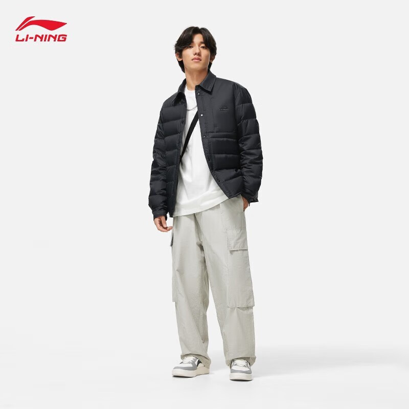李宁男子短羽绒服2025新品防泼水鸭绒立领保暖外套AYMT071