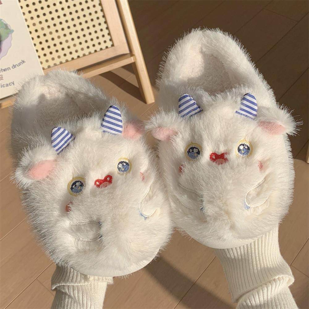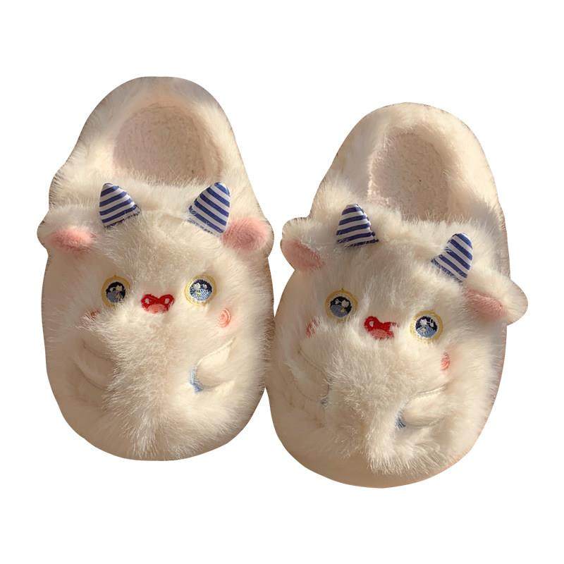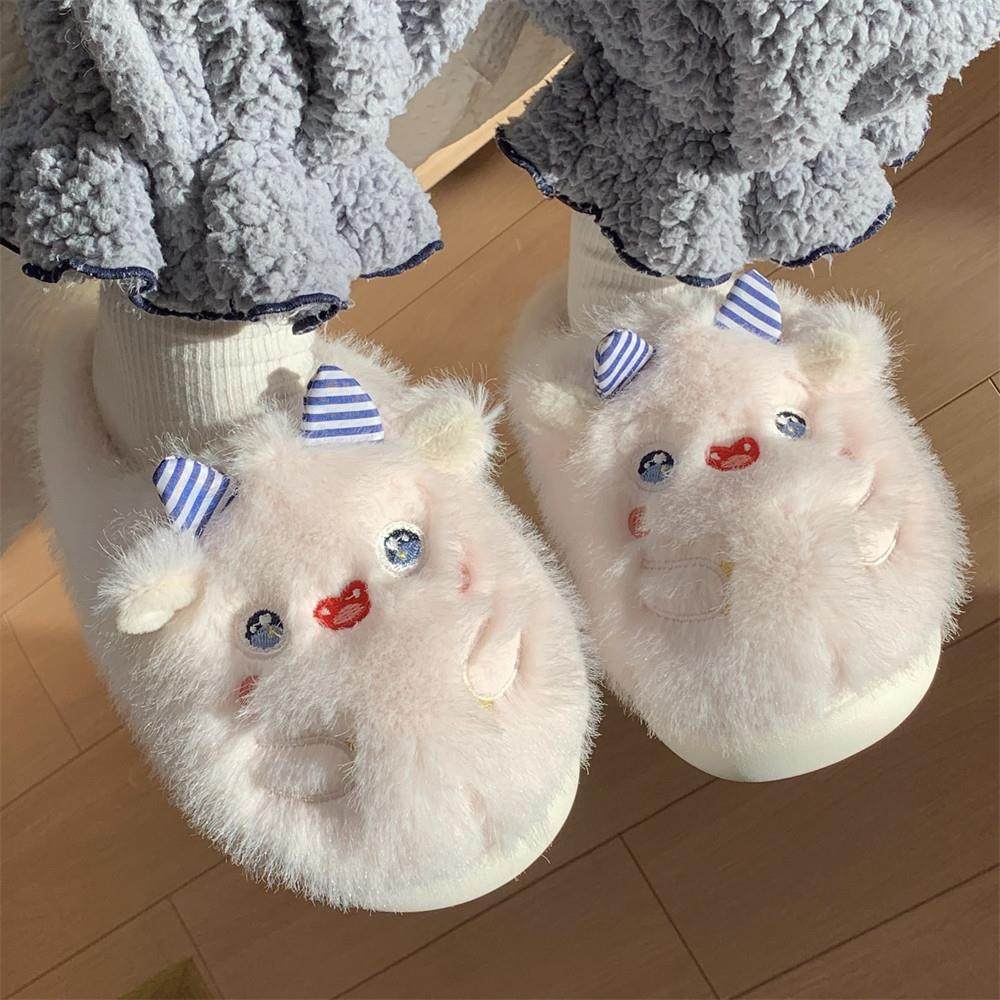 可爱软萌小怪兽棉拖鞋女冬季ins居家防滑厚底毛绒绒月子鞋