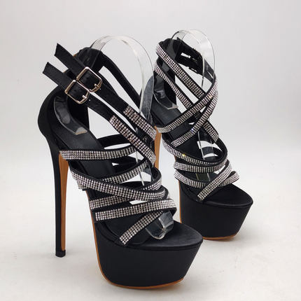 水钻细跟超高跟防水台罗马风时装凉鞋夜店夜场情趣性感骚断码清货