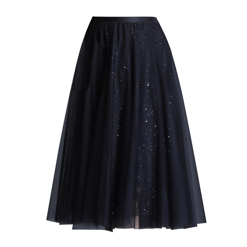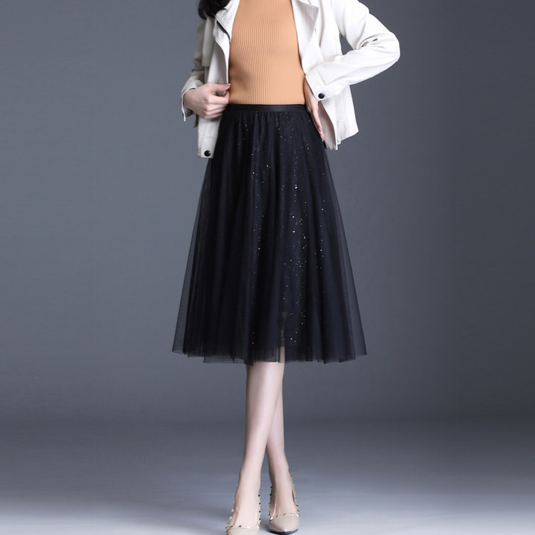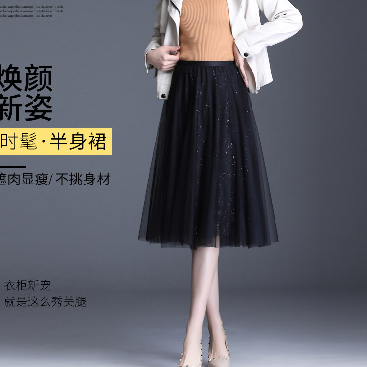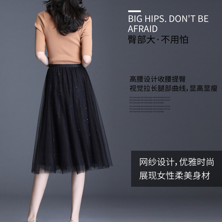网纱半身裙秋冬大码百褶遮胯纱裙胖mm女士中裙小个子松紧腰蕾丝裙