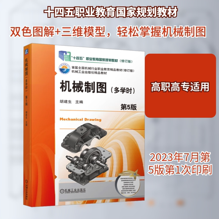机械制图 多学时修订版 第5版 胡建生 编 十四五职业教育国家规划教材 高职高专工科机械类专业的制图教材 机械工业出版社