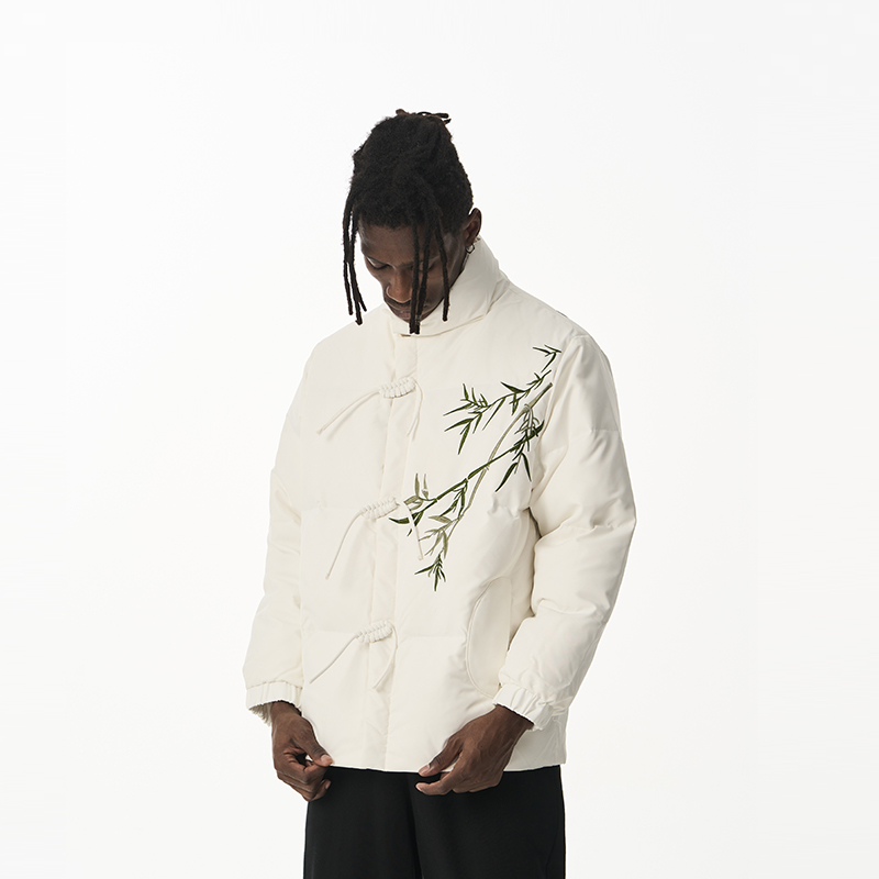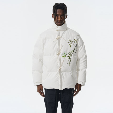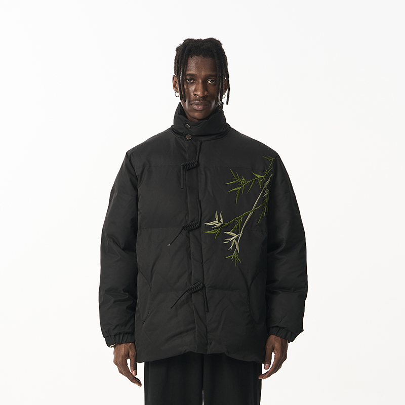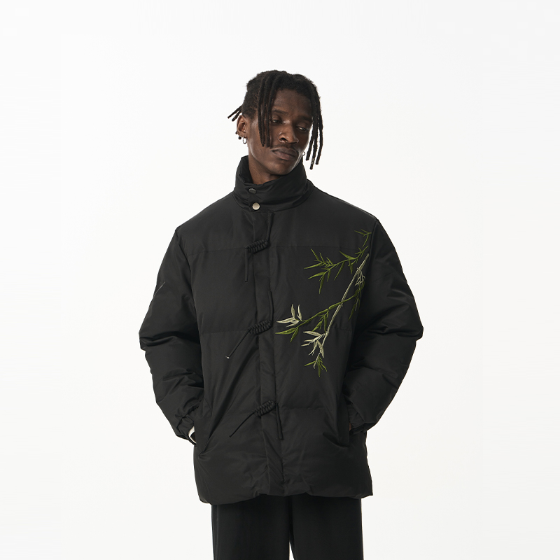 CNEW楚念贰问中国风盘扣翠竹刺绣高领棉服潮情侣款男女同款