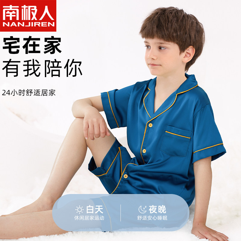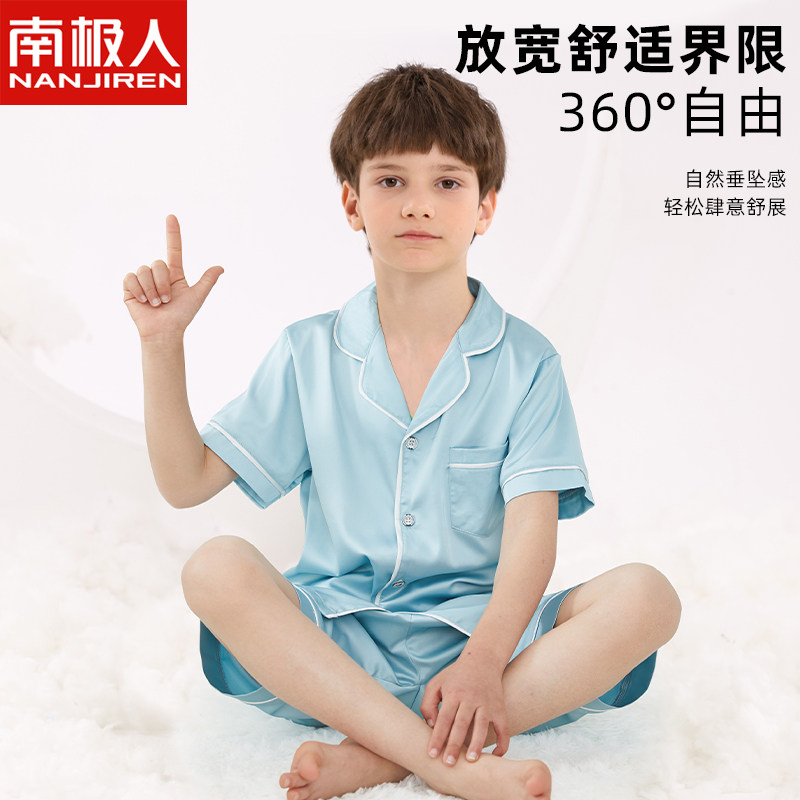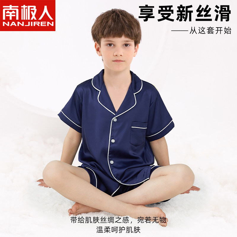 男童冰丝睡衣2025新款儿童薄款宝宝夏天短袖亲子仿真丝家居服套装