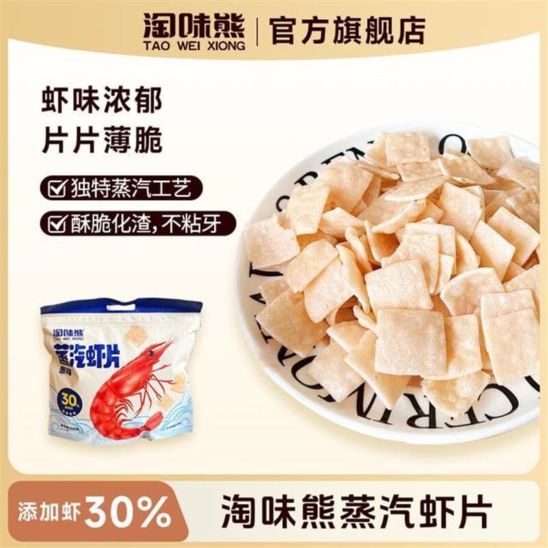 淘味熊蒸a汽虾片30%真实虾添加168g原味虾片虾条宿舍网红爆款零食