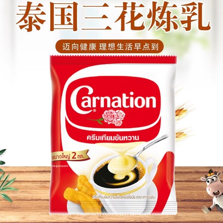 袋装三花炼乳泰国原版进口2kg商用奶茶店专甜品烘焙泰式奶茶