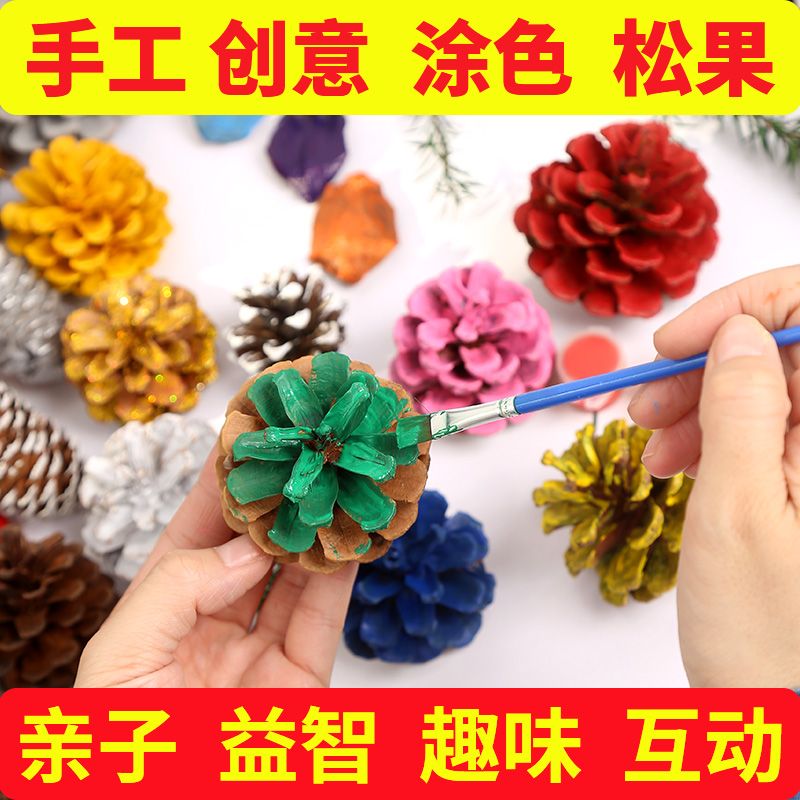 松果装饰品摆件松塔野生DIY手工材料干花环创幼儿园森林干树枝大