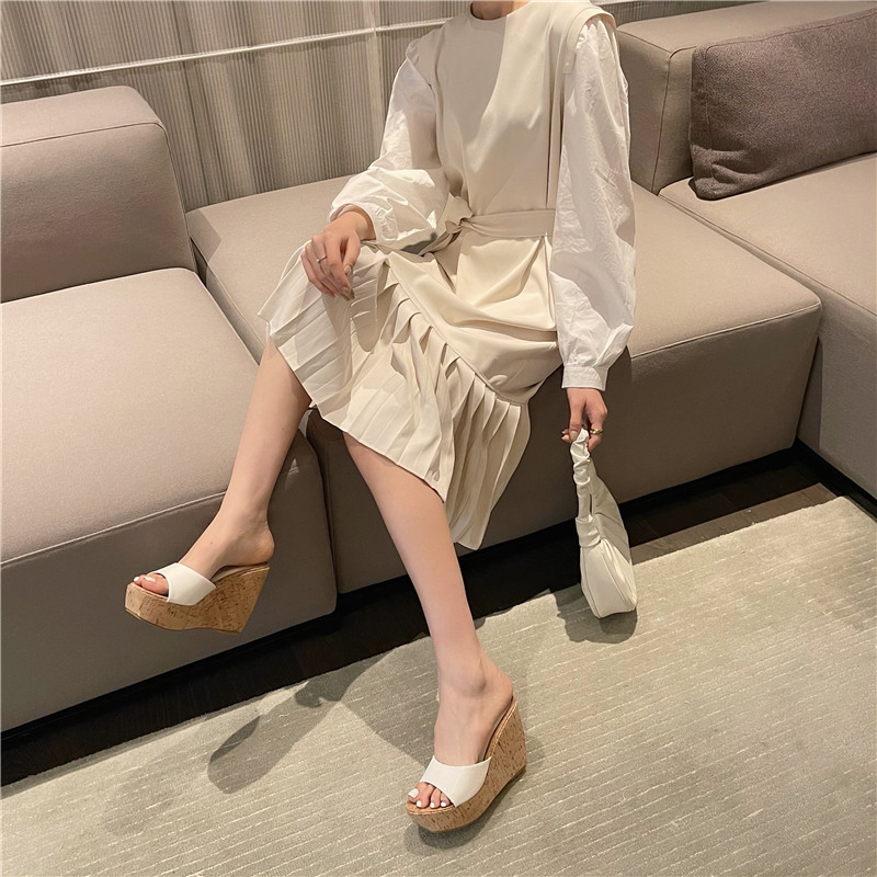 12CM坡跟超高跟凉鞋夏季新款防水台松糕厚底简约时尚鱼嘴凉拖鞋女