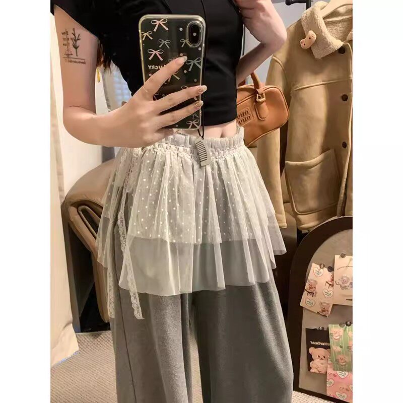 2025爆款芭蕾风波点蕾丝网纱半身裙女叠穿A字短裙少女一片式屁帘