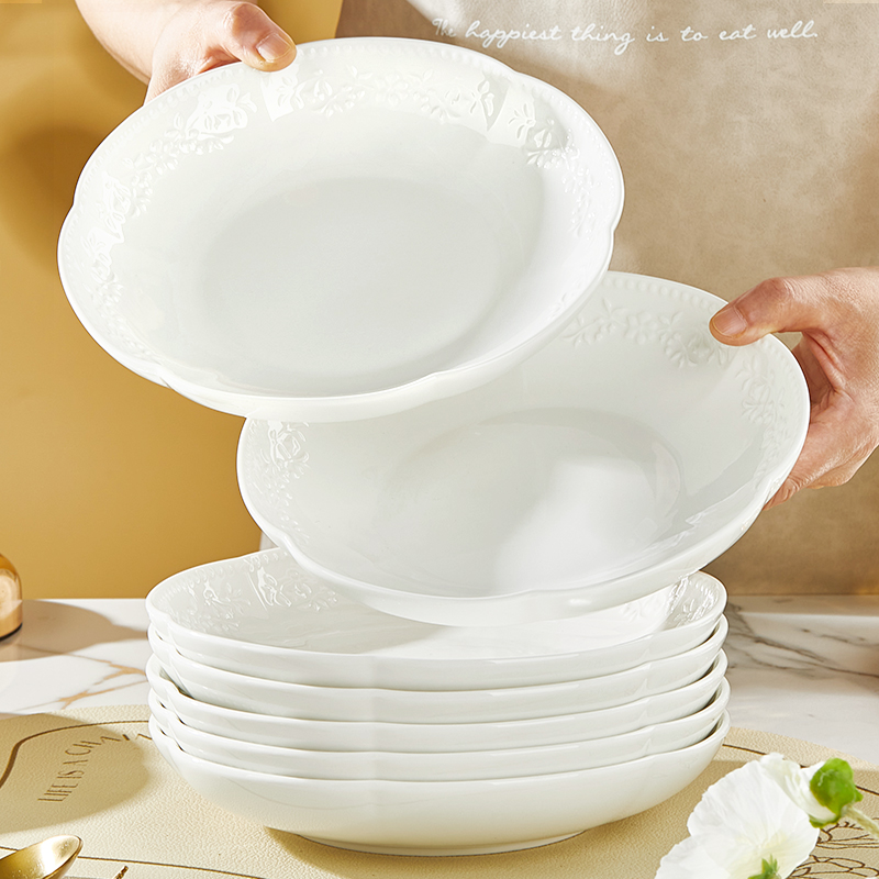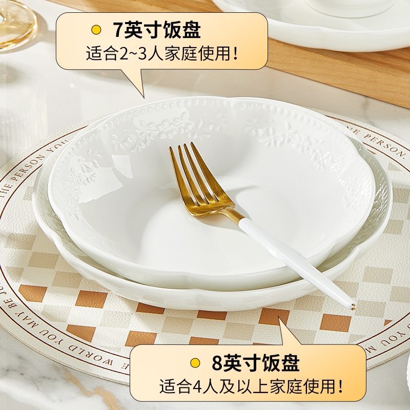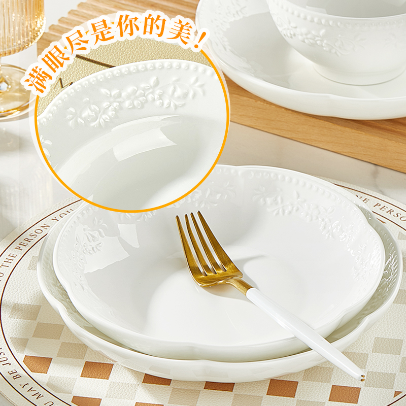 盘子菜盘家用2025新款釉下彩纯白简约加厚陶瓷餐具吃米饭碗菜盘子