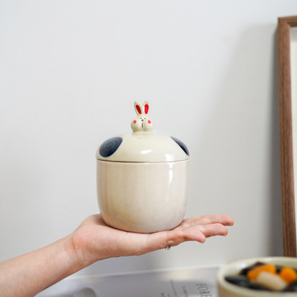 秋野家卡通陶瓷炖盅汤盅 小号家用燕窝蒸蛋宝宝辅食隔水炖罐 带盖