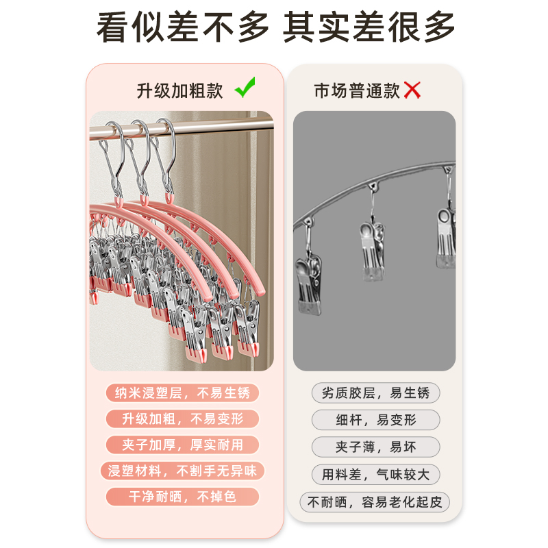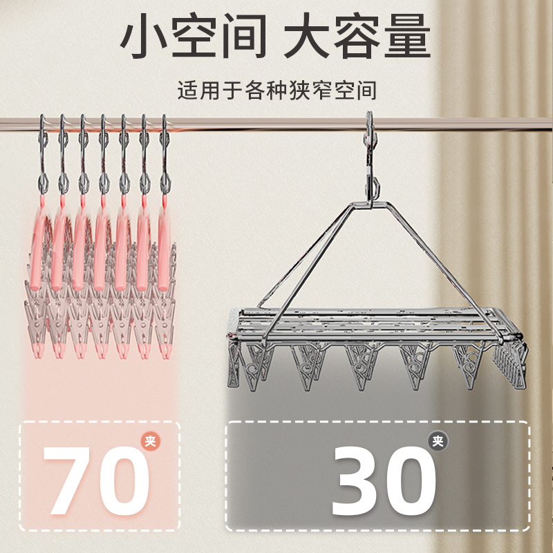 不锈钢多夹子晾衣架无痕防风阳台挂衣内衣内裤婴儿袜夹晒袜子神器
