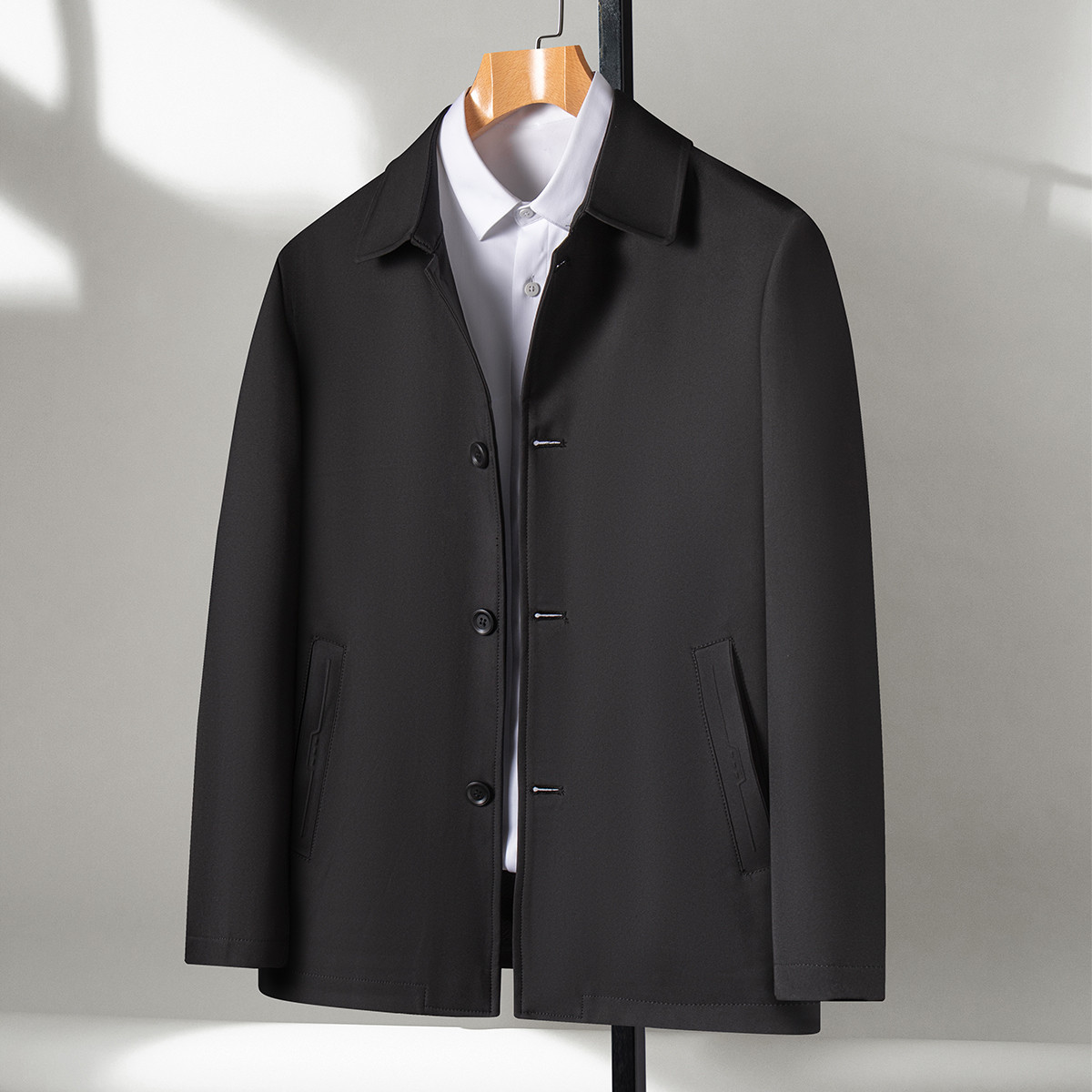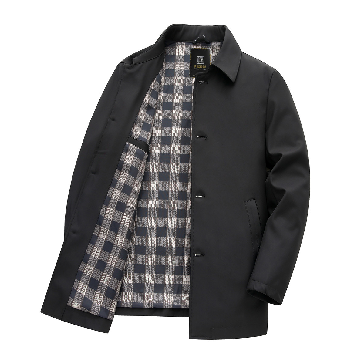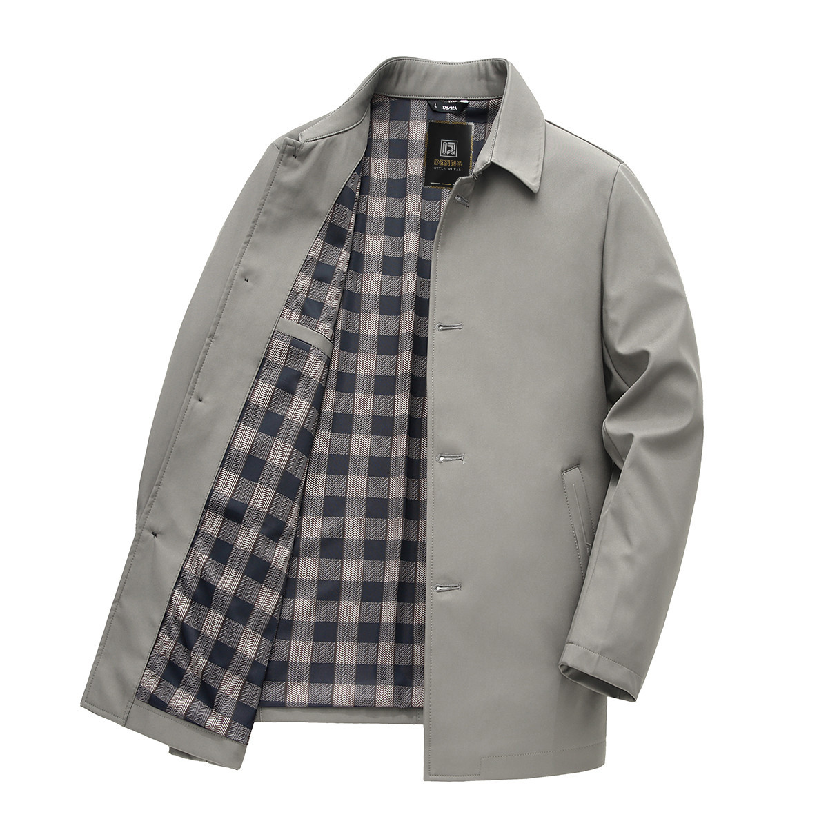 罗蒙夹克中长款翻领干部时尚爸爸装春秋格子内里行政风衣男士外套
