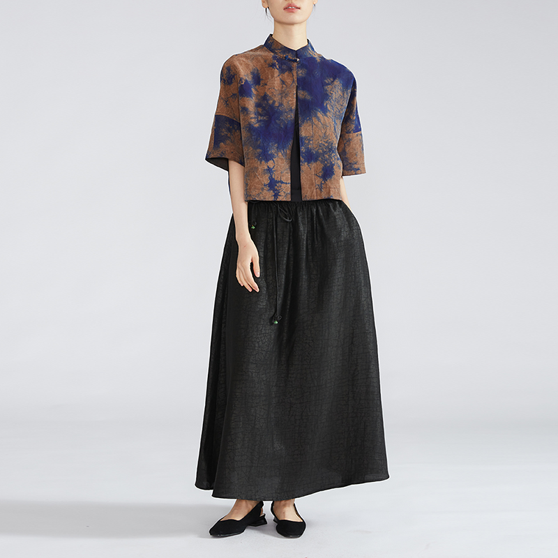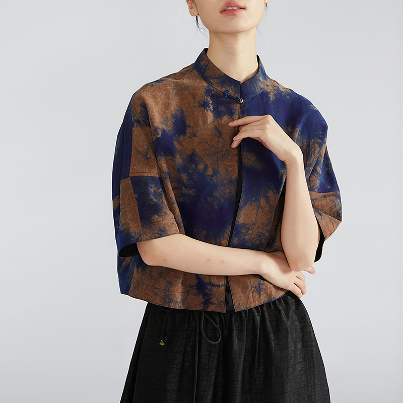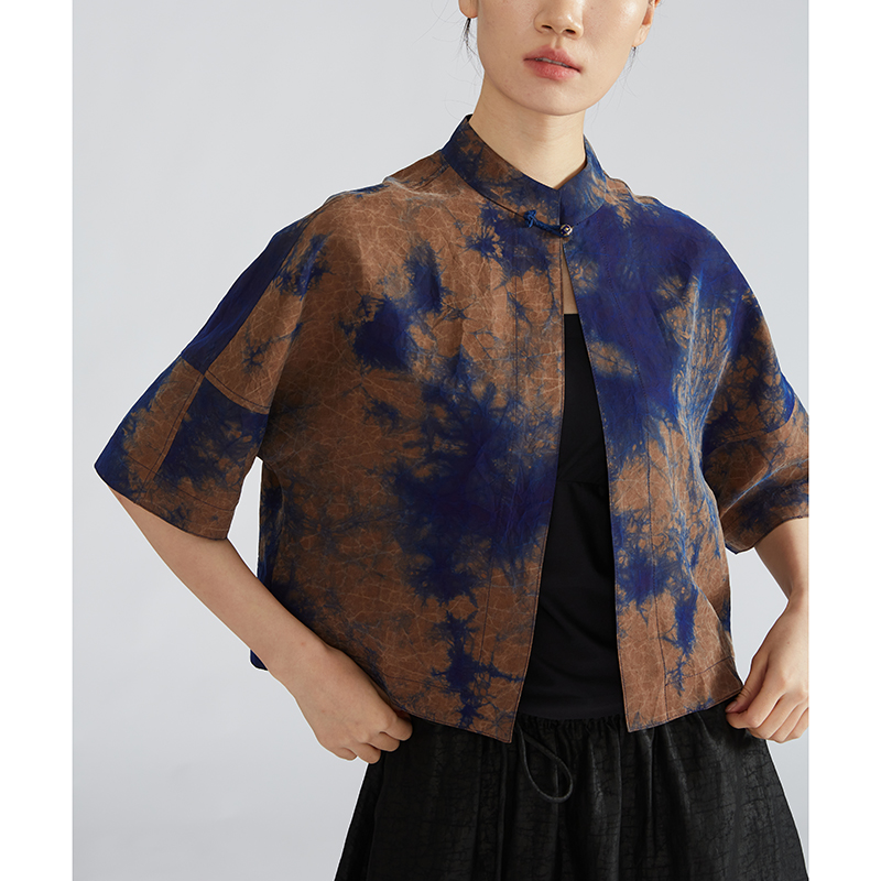 一丝牵 双面穿 桑蚕丝香云纱龟裂纹扎染开衫真丝茶服中式国风外套