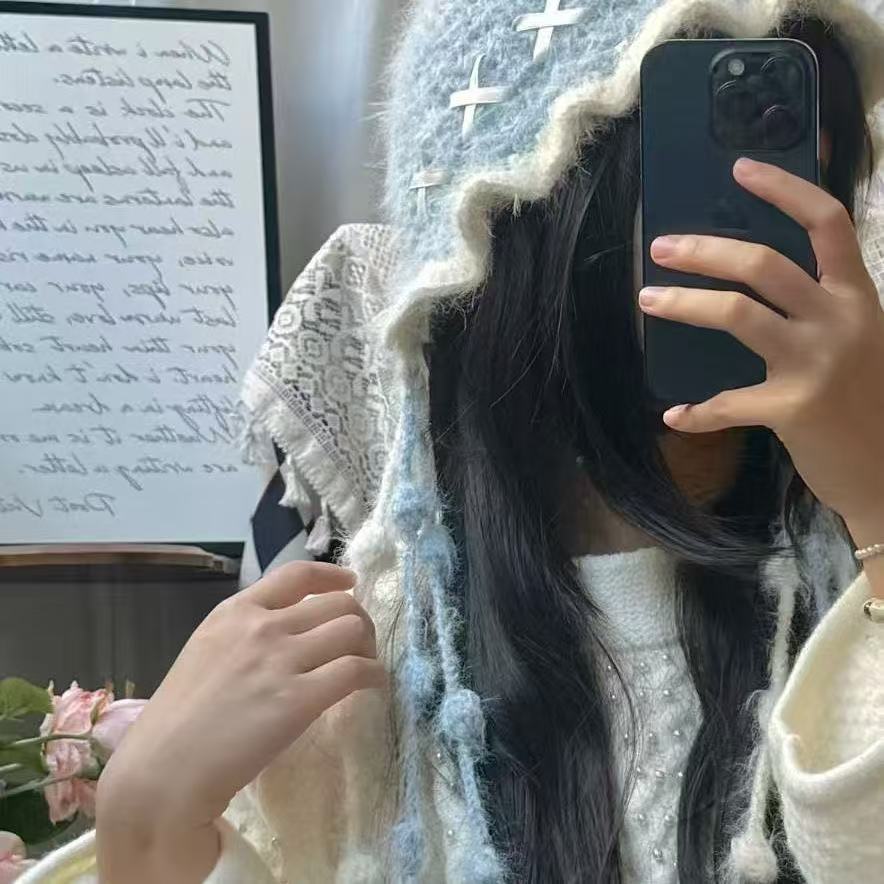 流苏水母帽手工diy材料包毛线雪花纱混羊毛编针织渔夫帽送女朋友