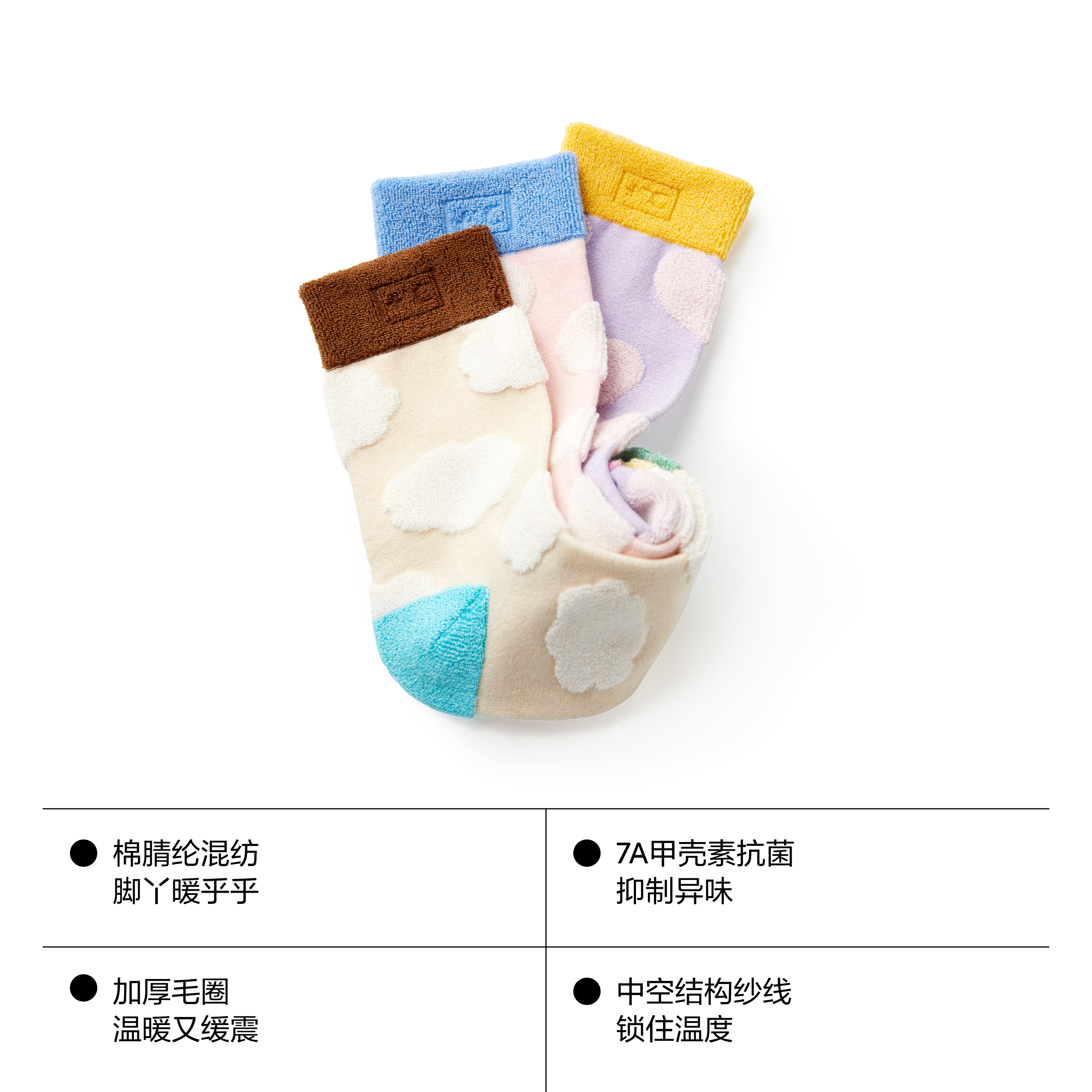 3双|蕉内小热皮503+++男女童保暖图案机能中筒袜子秋冬加绒加厚