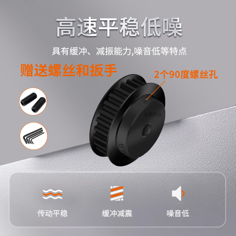 同步轮S5M20齿钢B齿宽11/16内孔563581012马达钢锥套定制同步带轮