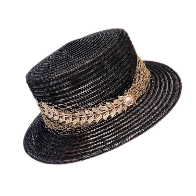 气质复古时髦拍照网红礼帽女春夏短檐网纱法式平顶帽遮阳防晒草帽