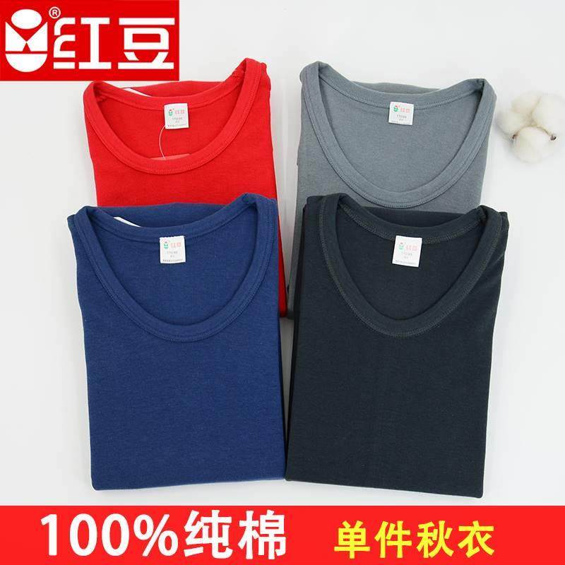 红豆纯棉秋衣单件上衣男圆领保暖
