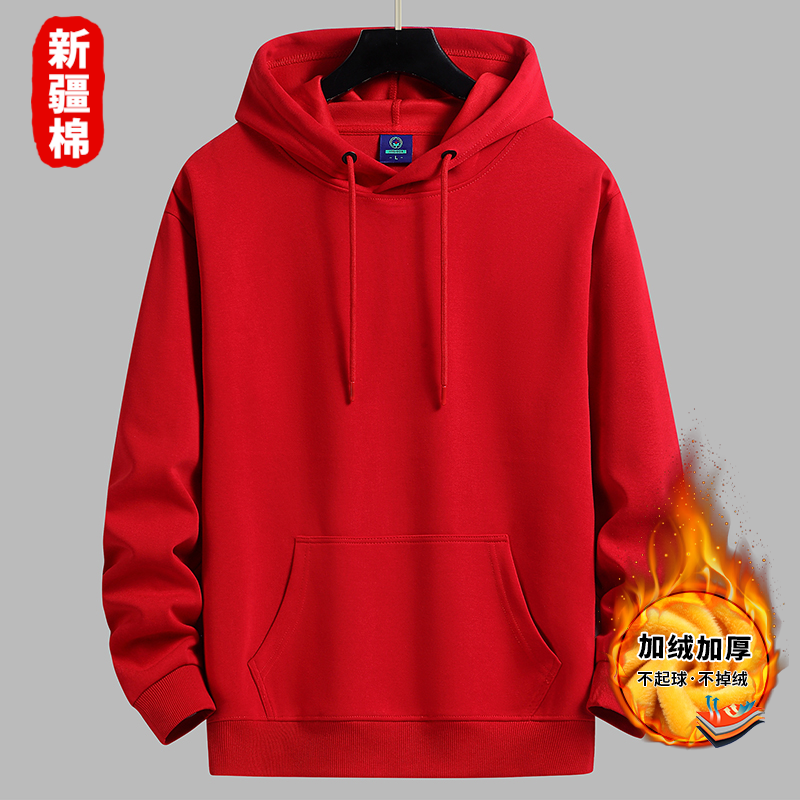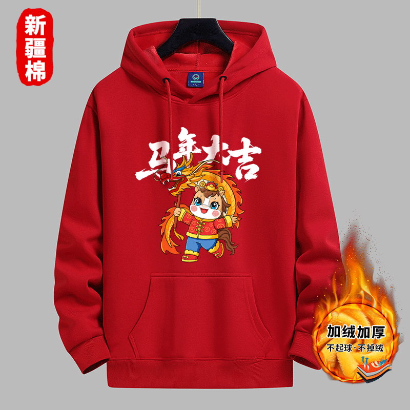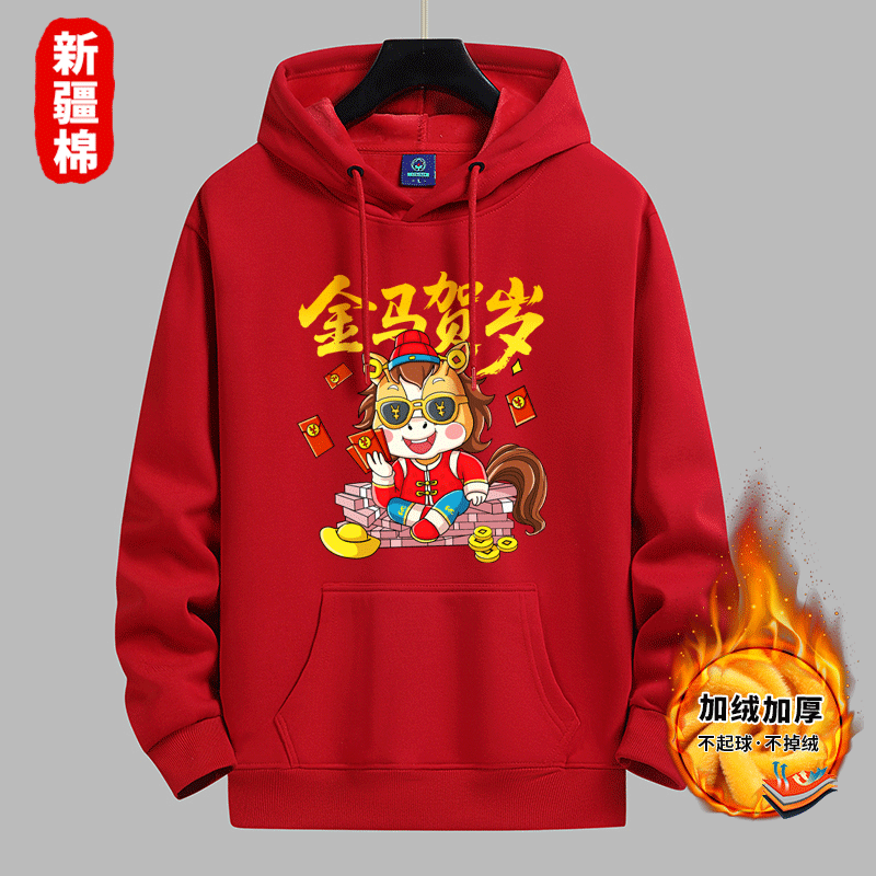 生肖马年红色卫衣男女本命年套头帽衫加绒加厚宽松连帽新年红外套