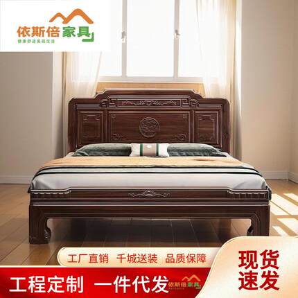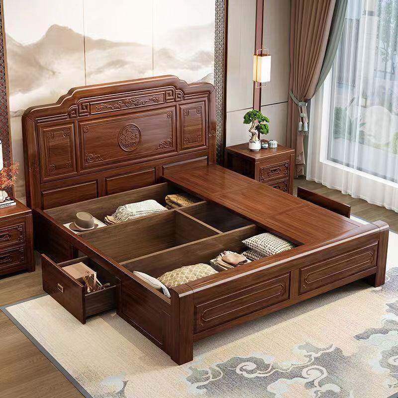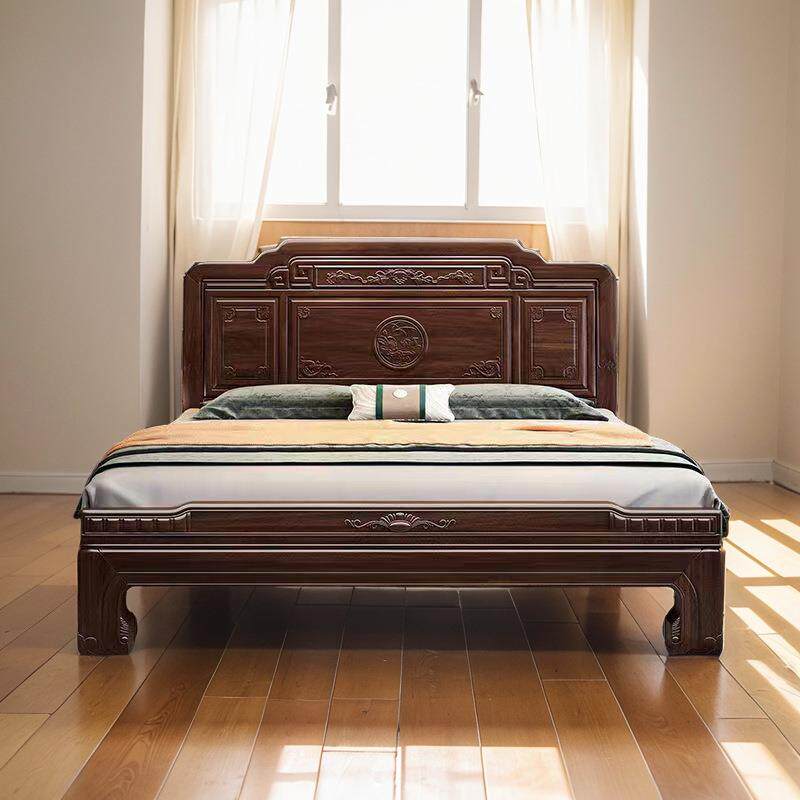 金花梨木实木床明清古典新中式床主卧双人加厚婚床榫卯雕花虎脚床