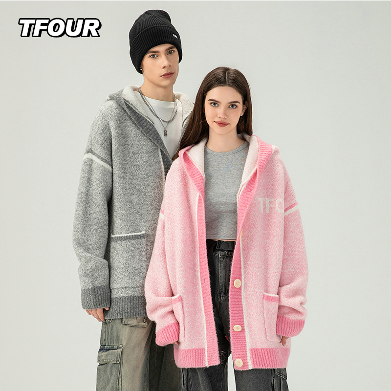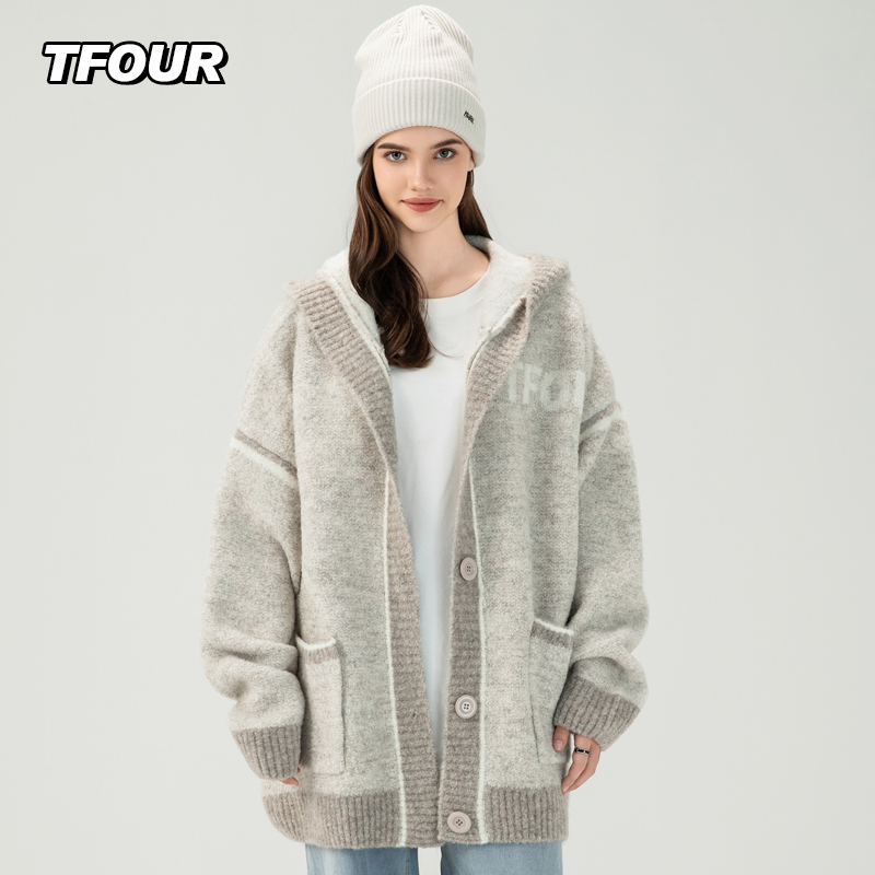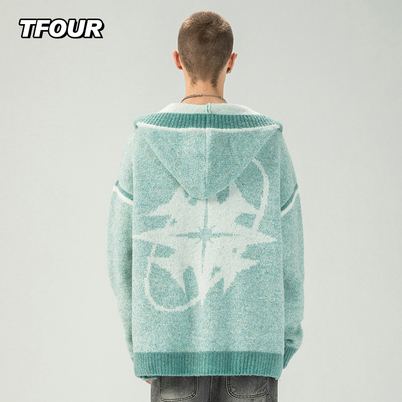 TFOUR 秋冬季八芒星针织开衫男女同款潮牌宽松美式慵懒风毛衣外套