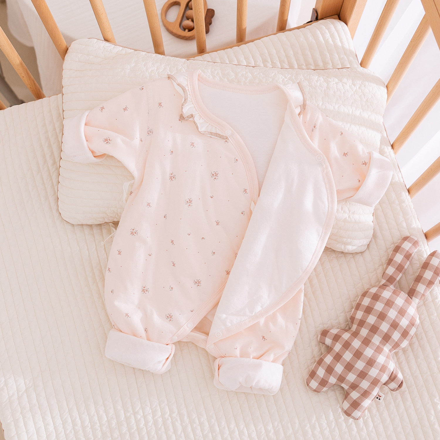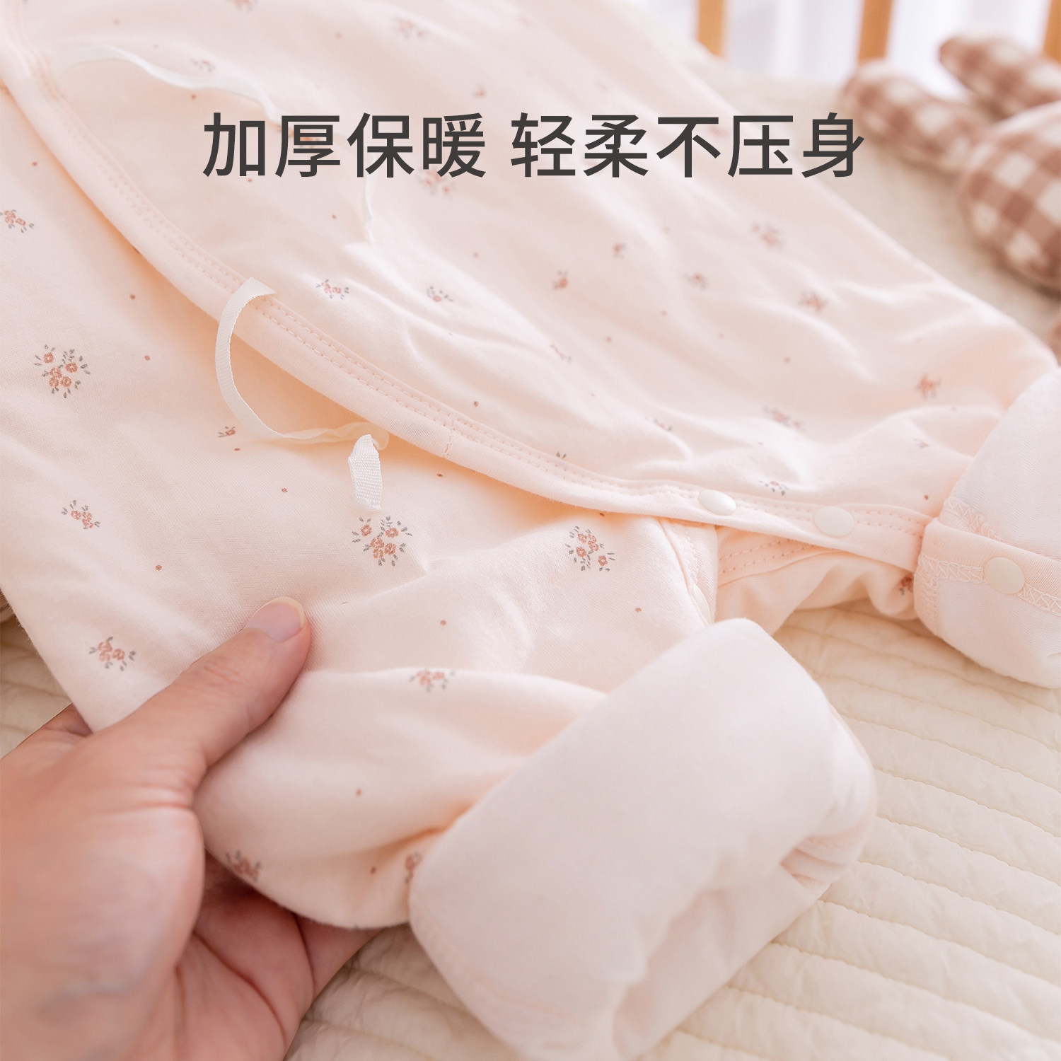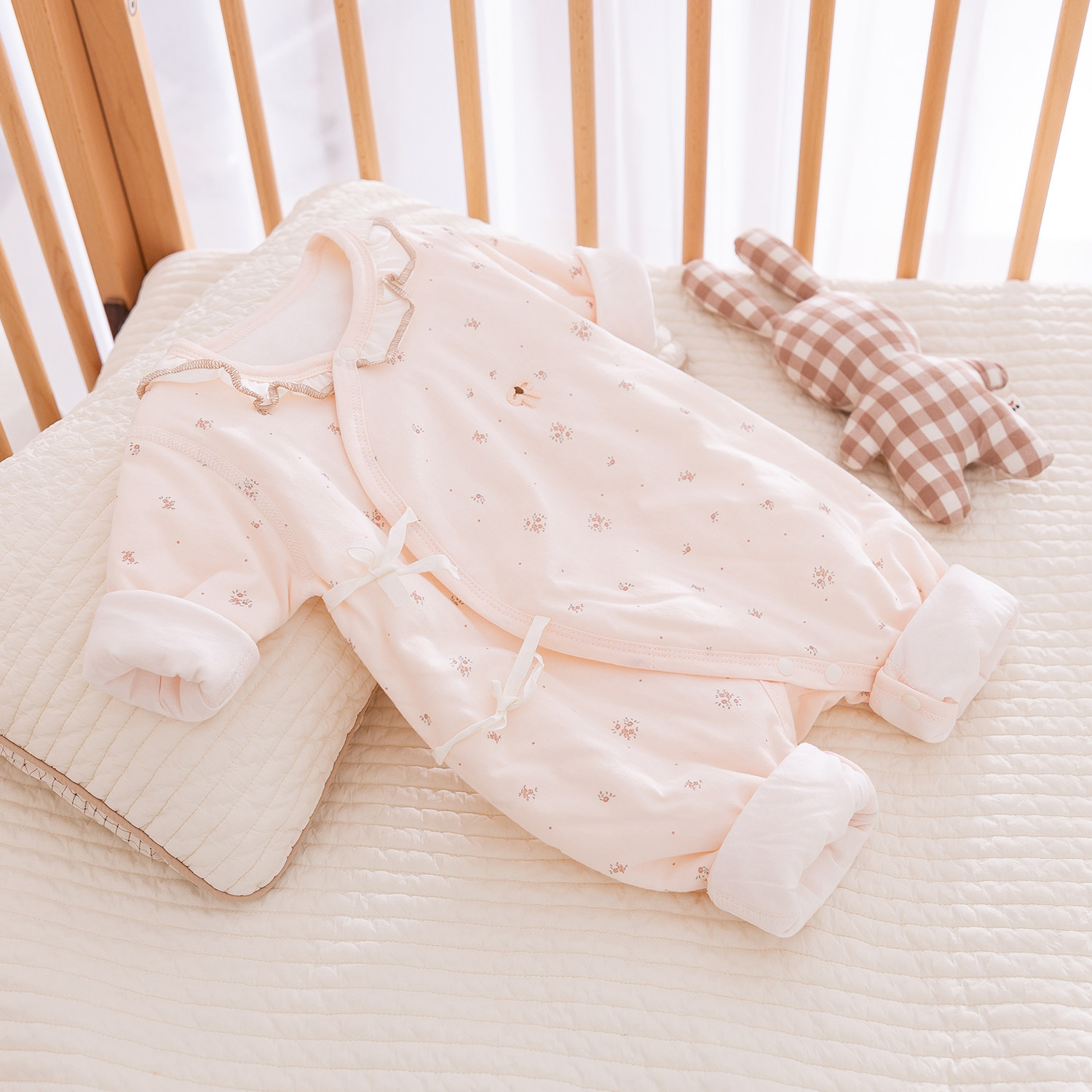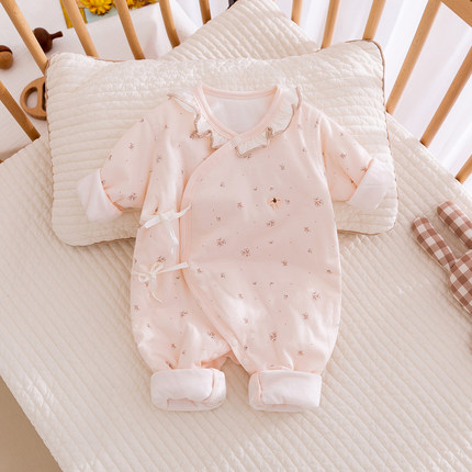 新生婴儿衣服秋冬季夹棉薄棉衣女宝宝哈衣和尚服纯棉护肚连体衣03