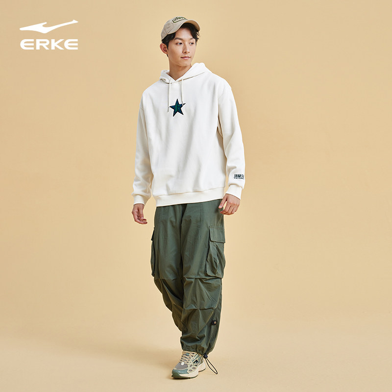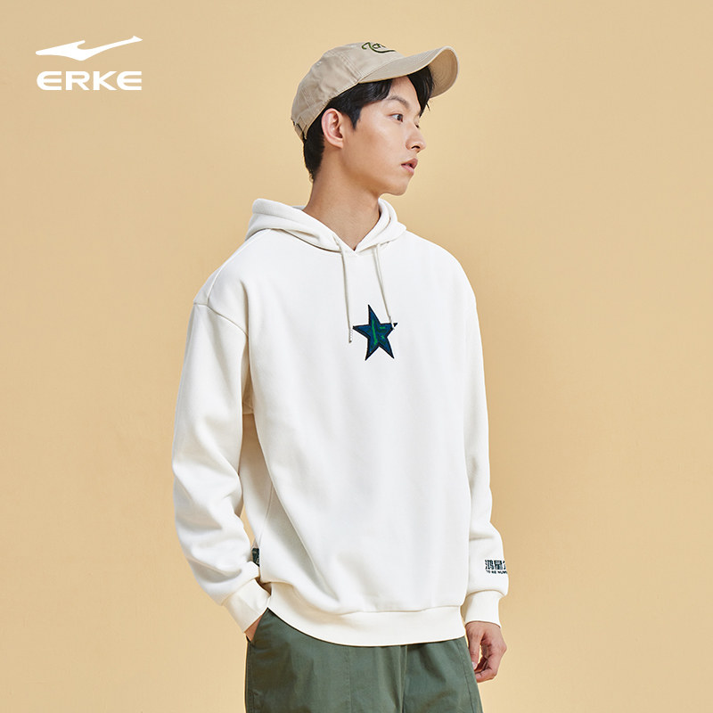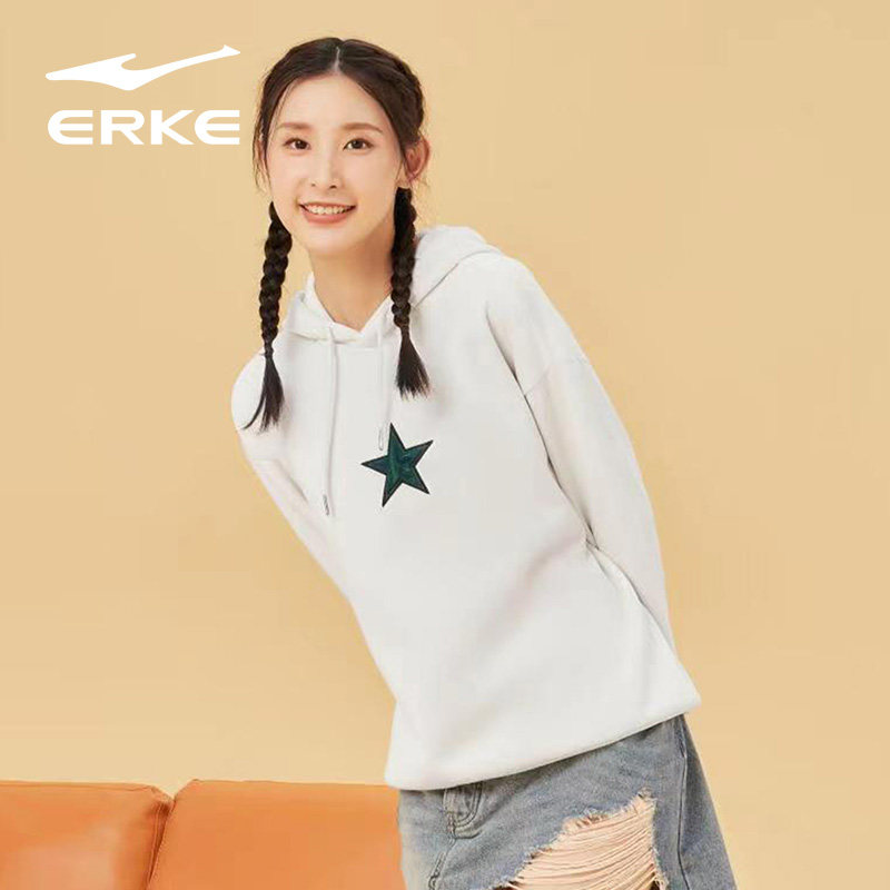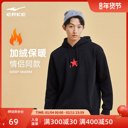 中国鸿丨鸿星尔克冬季新款男女国潮加绒连帽星星卫衣运动上衣
