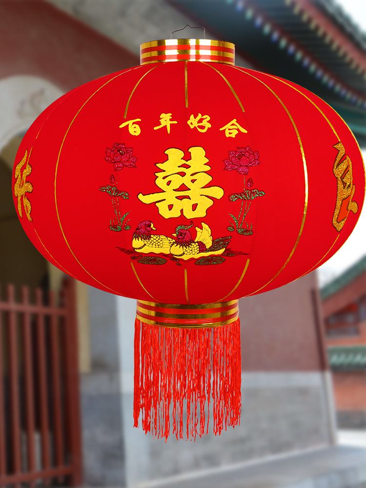 婚庆灯笼喜字大红灯笼结婚用品喜庆装饰植绒灯笼户外防水大门灯笼