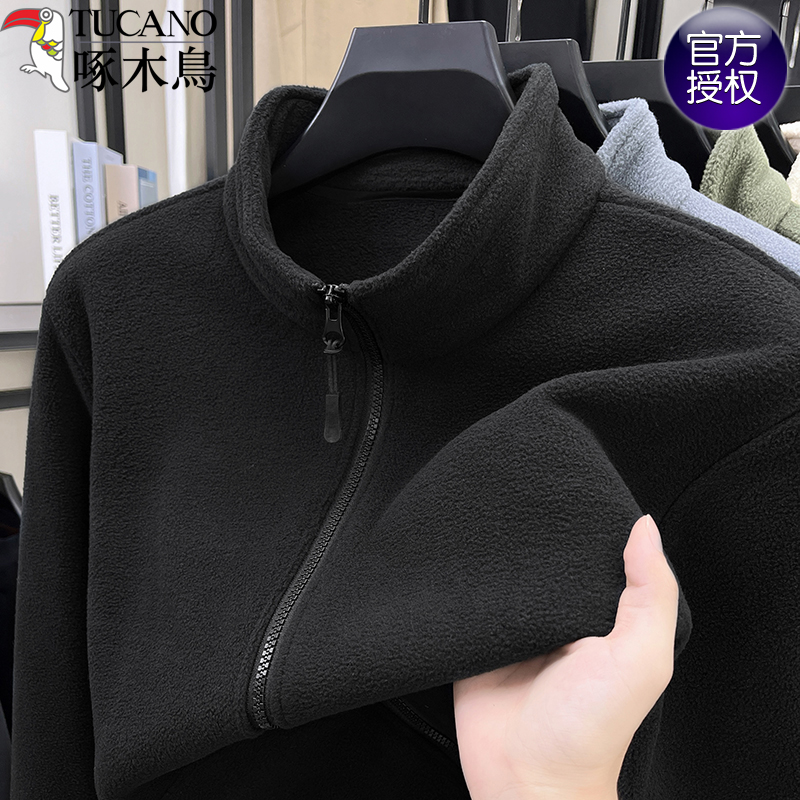 啄木鸟2025新款摇粒绒开衫卫衣男秋冬季加厚夹克双面绒立领外套男