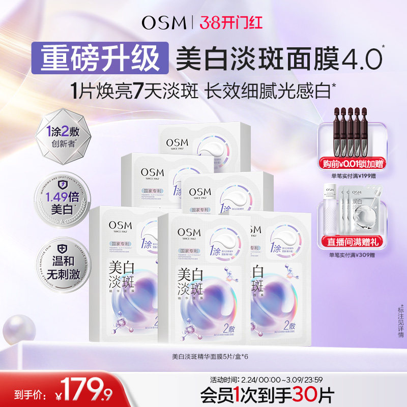 欧诗漫美白淡斑面膜去黄暗沉提亮