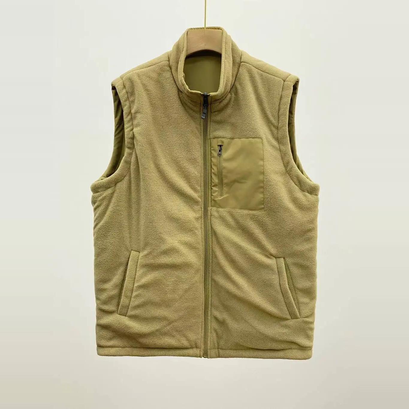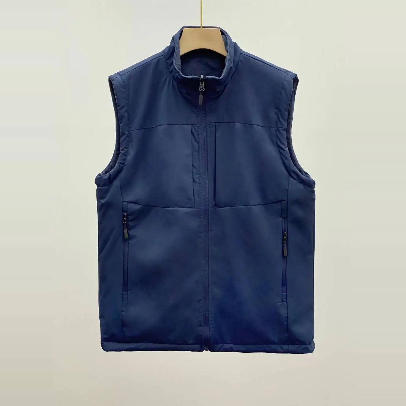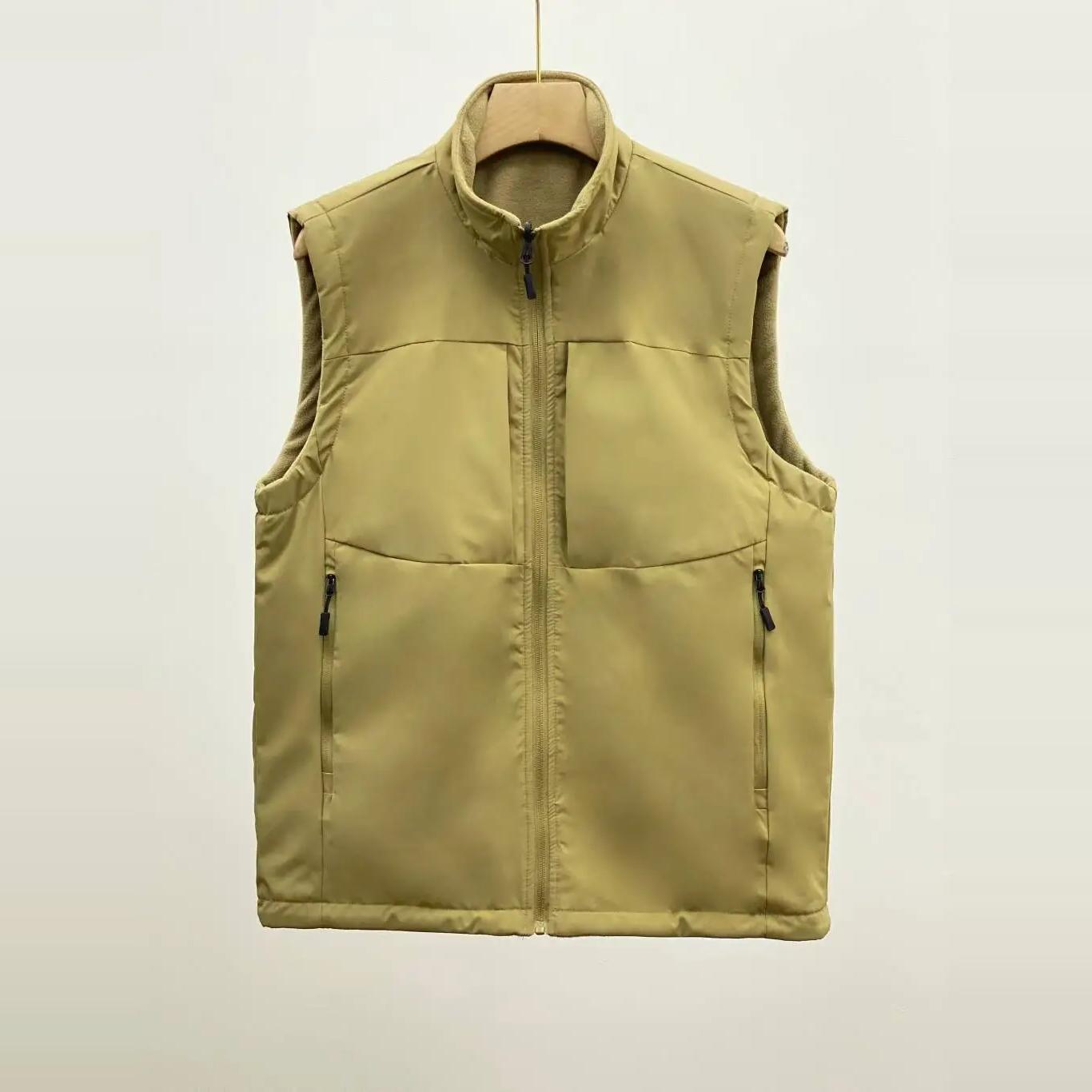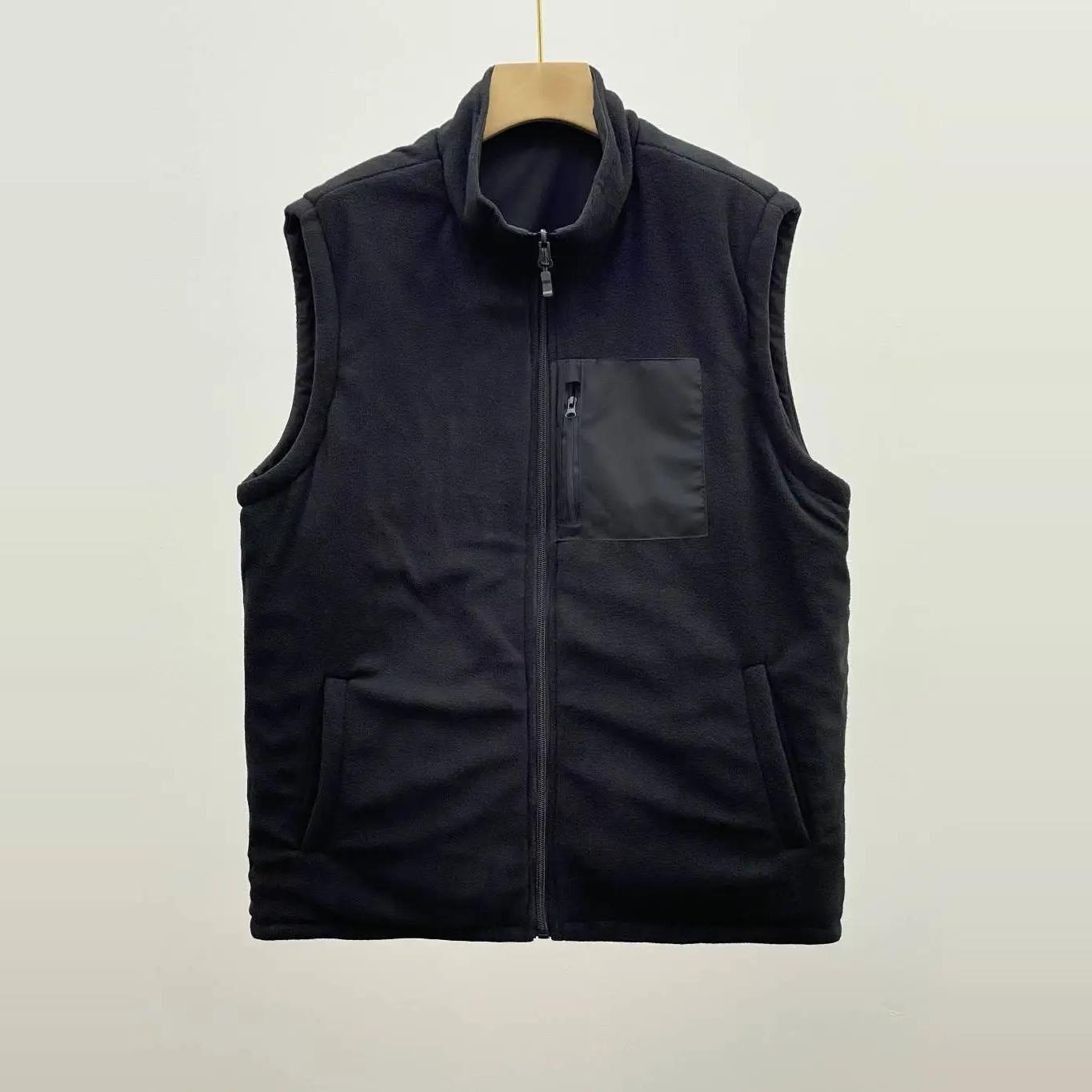 男秋冬双面穿加绒加厚保暖防风防水立领马甲软壳工装背心外套8822