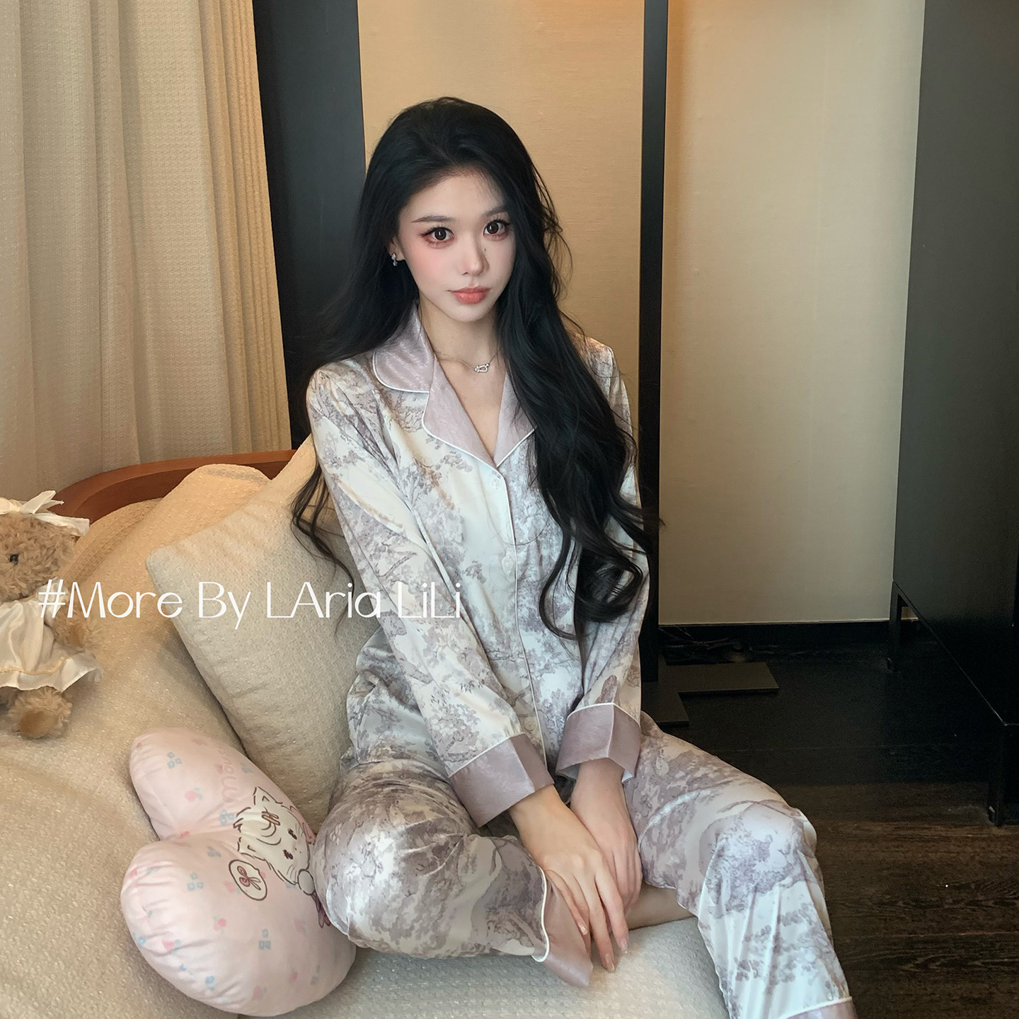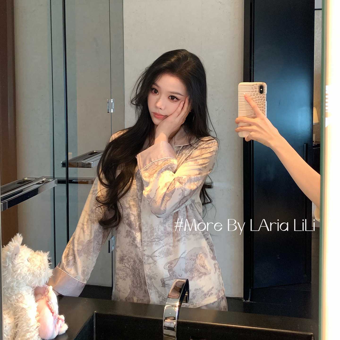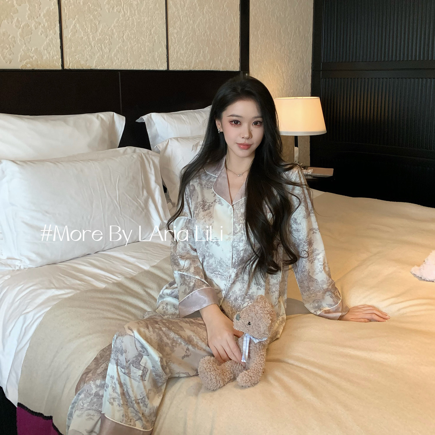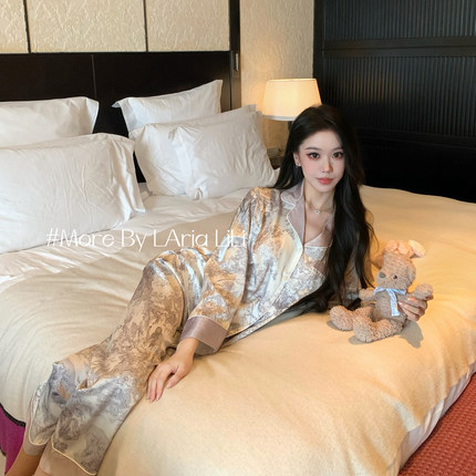 LAria水墨晕染 睡衣女2026新款春季纯欲风冰丝高级感纯欲风家居服