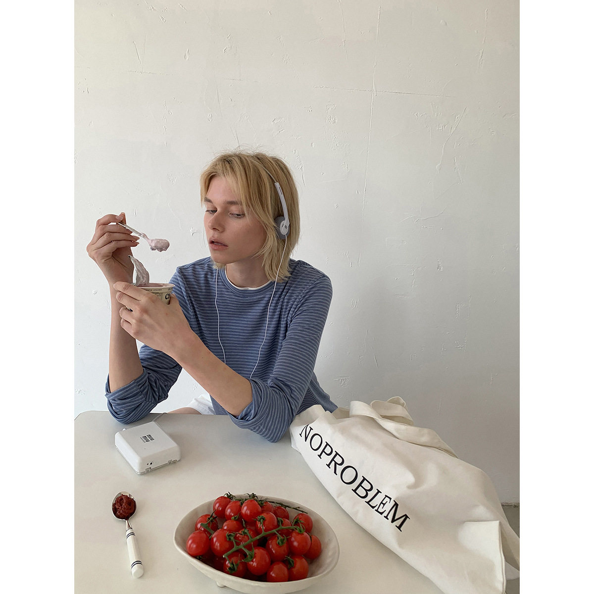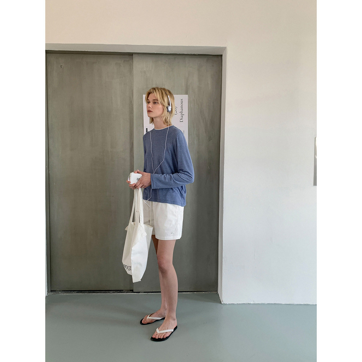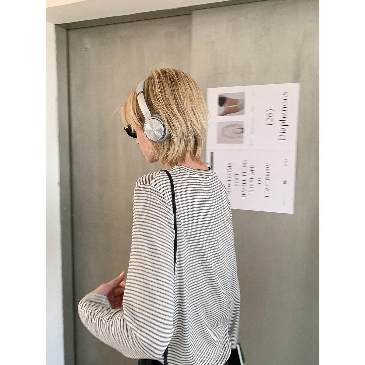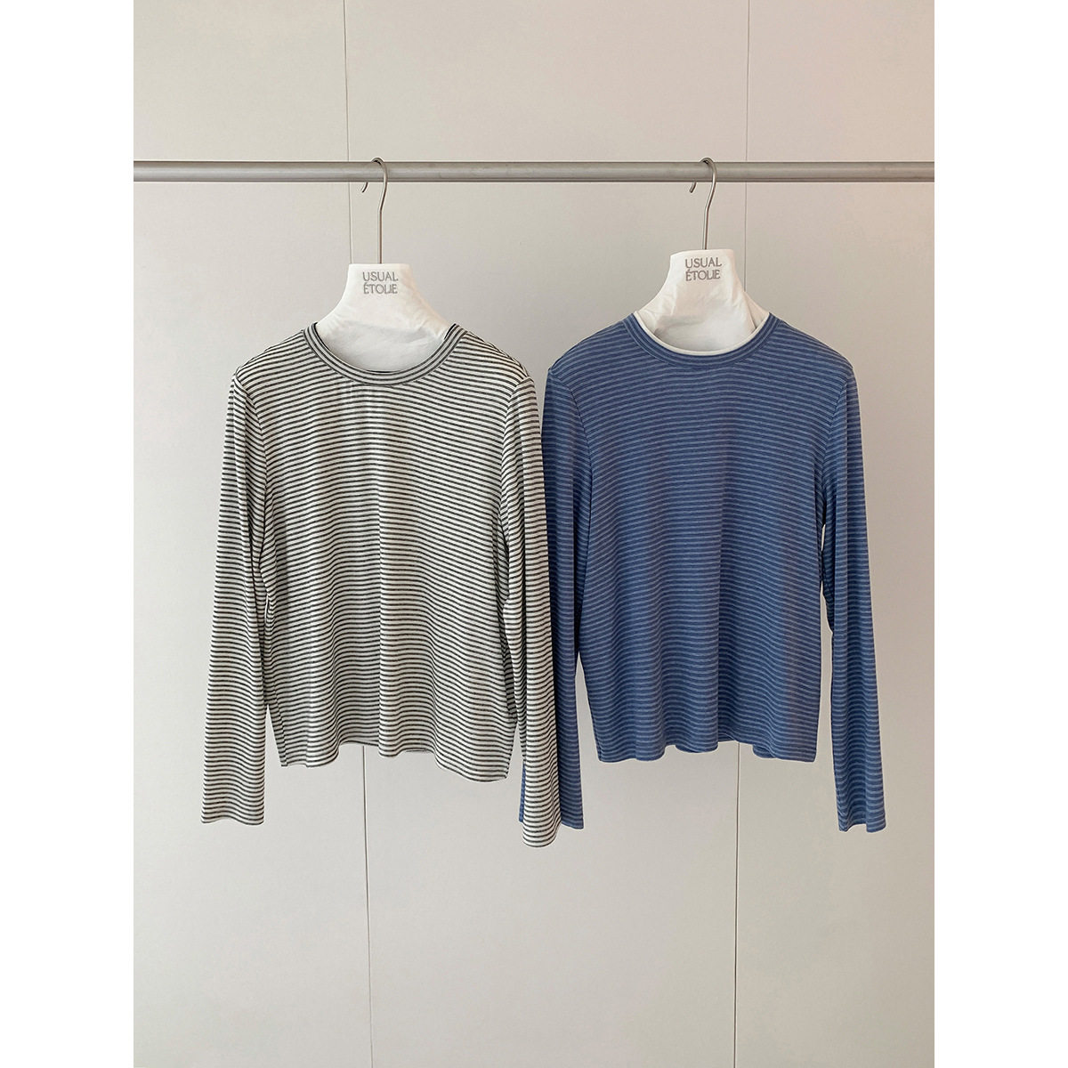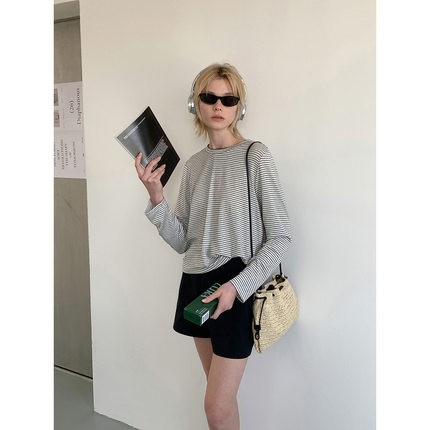 DT 春季焕新 休闲圆领撞色条纹针织长袖T恤女打底衫可外穿上衣女