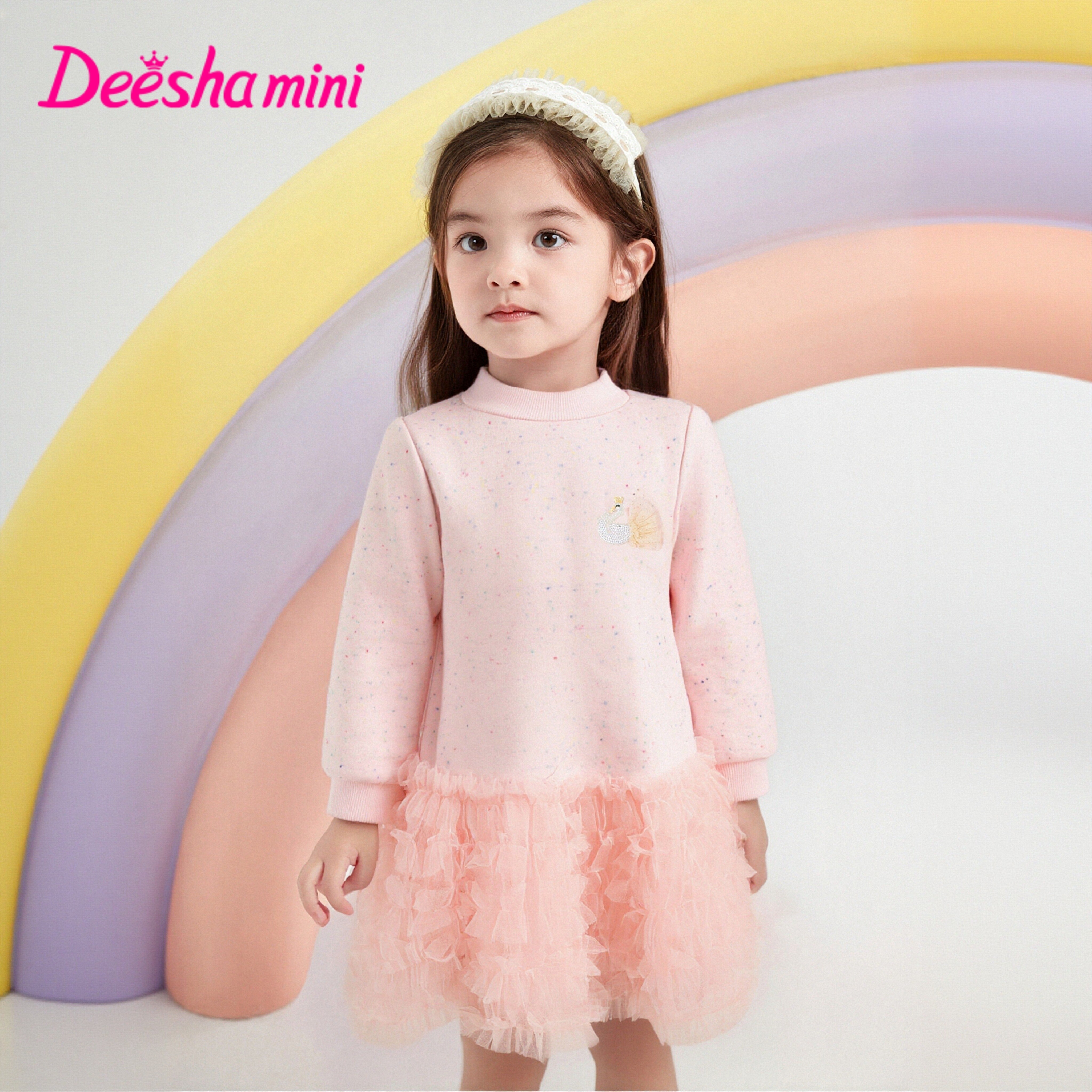 笛莎官方旗舰女童卫衣裙冬季新款儿童宝宝童装连衣裙加绒加厚保暖