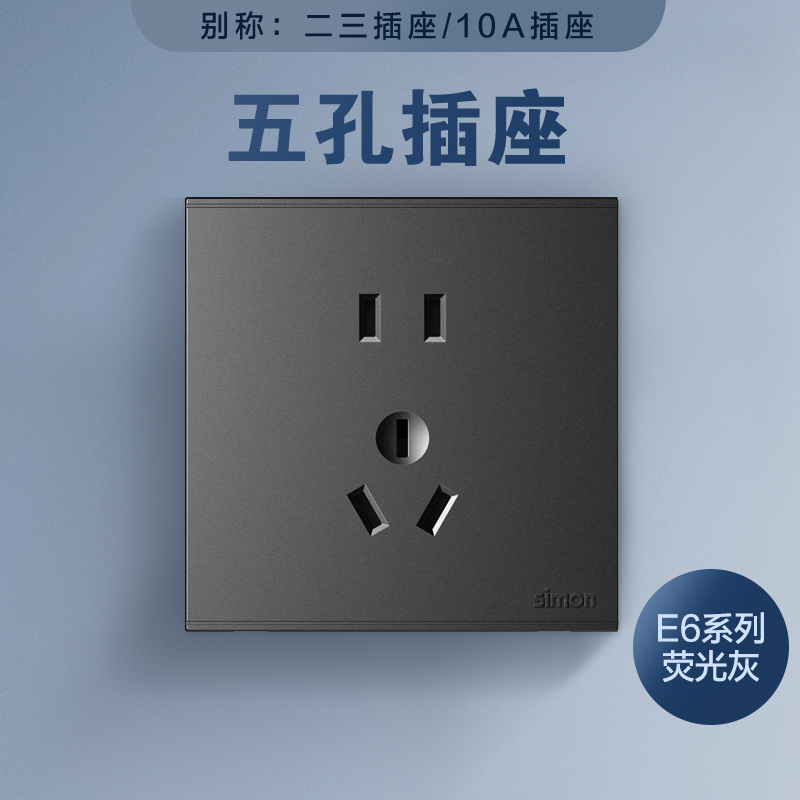 西蒙官方旗舰店开关插座E6系列荧光灰色面板86型五孔暗装家用电源