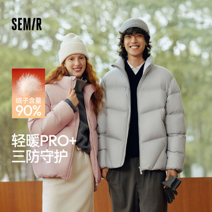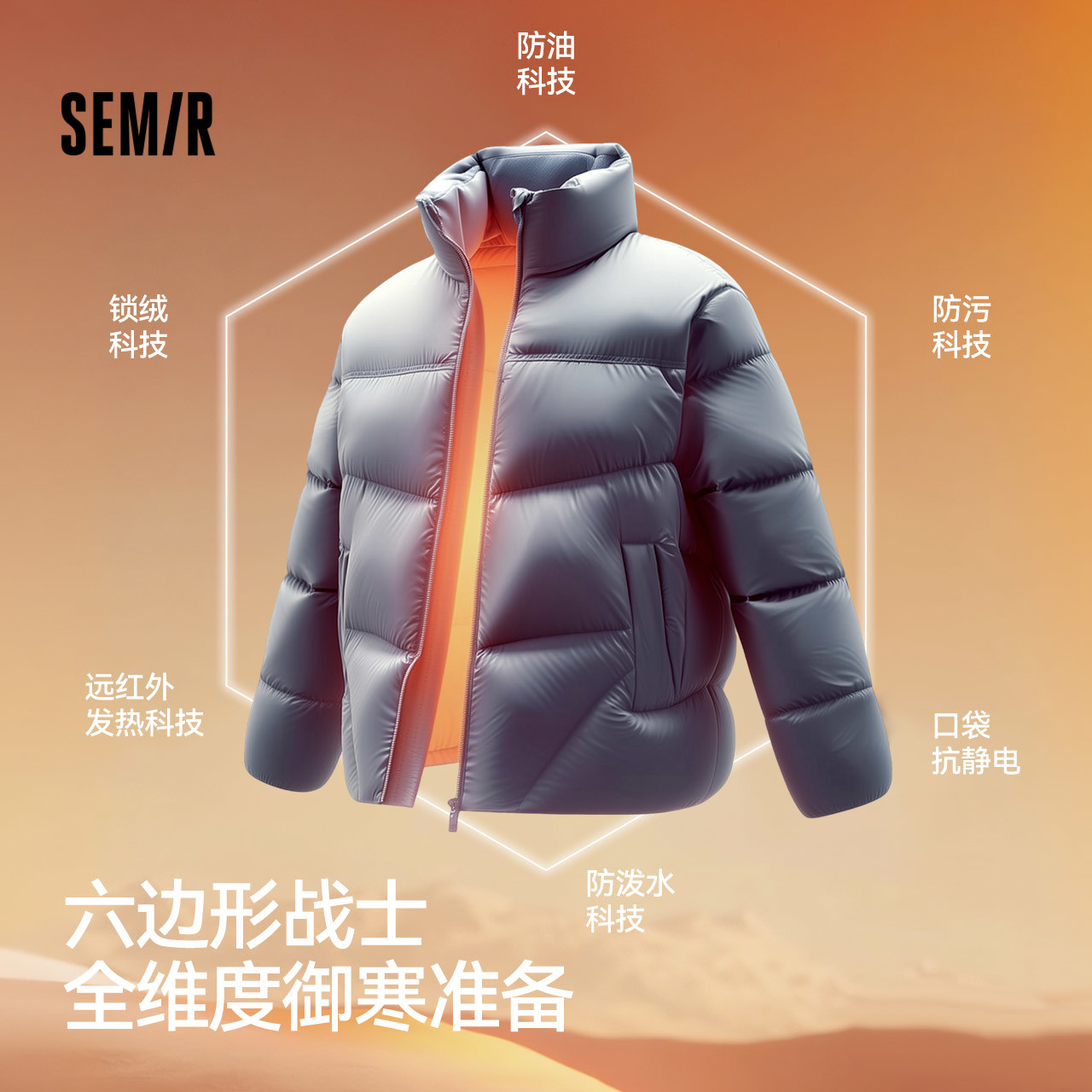 轻松|森马羽绒服男冬90绒子发热三防外套2025新款情侣立领面包服