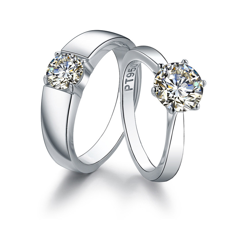 正品莫桑石戒指925银1克拉男女情侣对戒订结婚钻戒送女友生日礼物