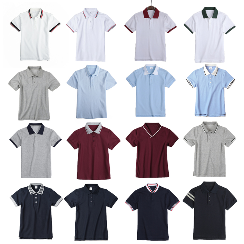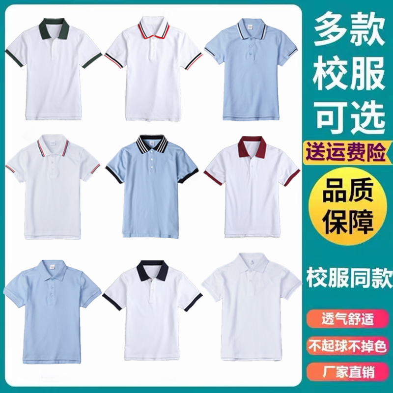 儿童POLO衫白色男童灰色T恤女童夏装英伦蓝色小学生夏季校服短袖