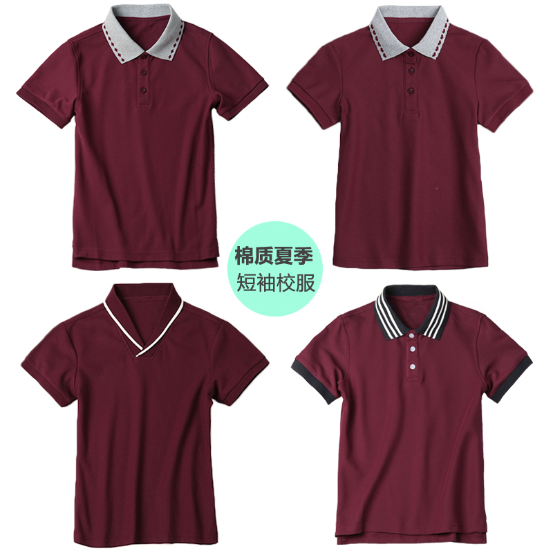 儿童polo枣红色小学生校服