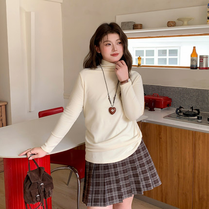 YUZI鱼子针织德绒打底衫特大码女装半高领T恤保暖显瘦春季胖mm
