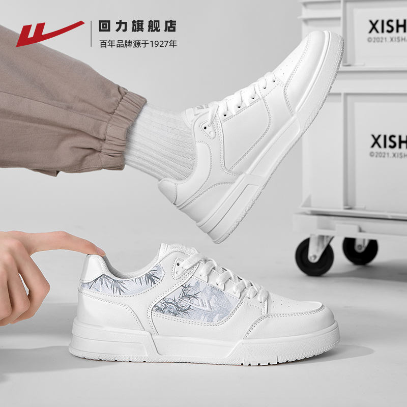 回力男士板鞋秋季新款水墨画情侣小白鞋子百搭男士厚底运动休闲鞋