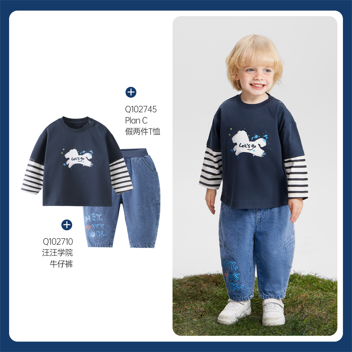 齐齐熊宝宝亲肤赛络纺牛仔裤