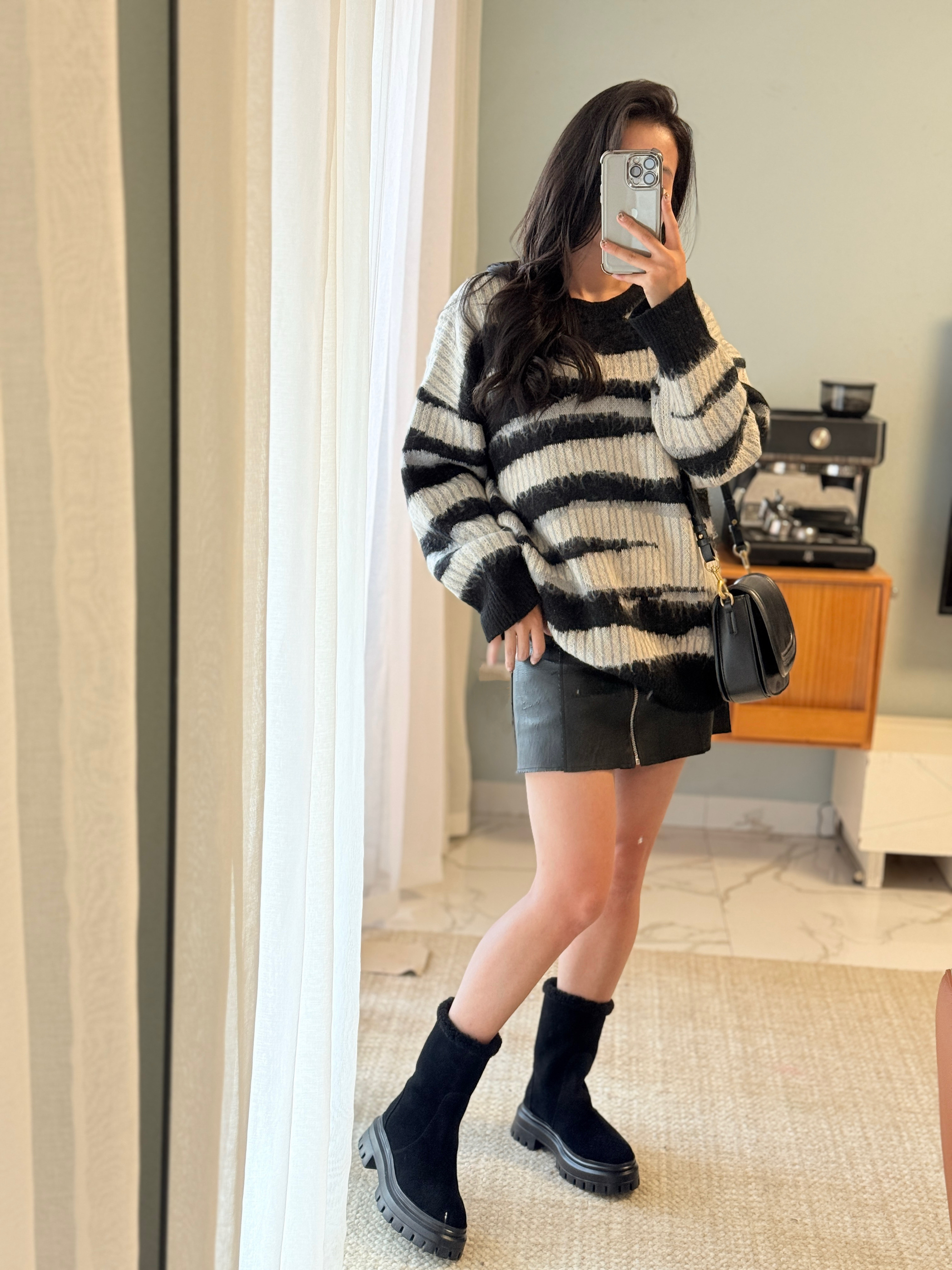 SW高版厚底雪地靴短靴女24新款烟管靴圆头粗跟马丁靴真皮高跟靴子