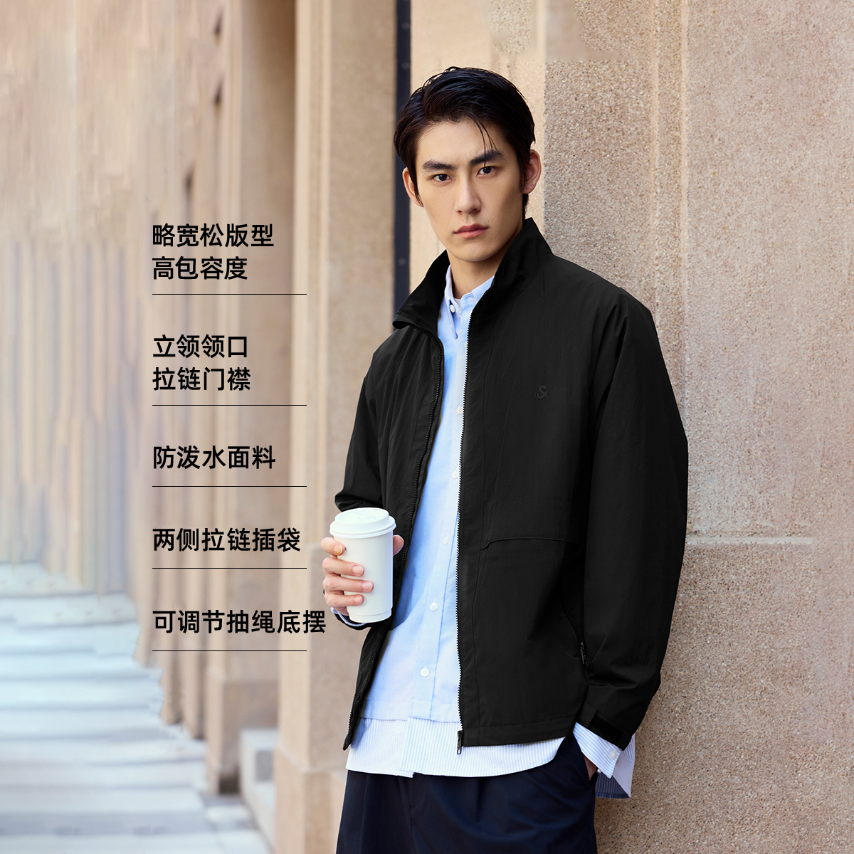 杰克琼斯男装秋季夹克日常百搭纯色宽松版型拉链口袋长袖外套上衣
